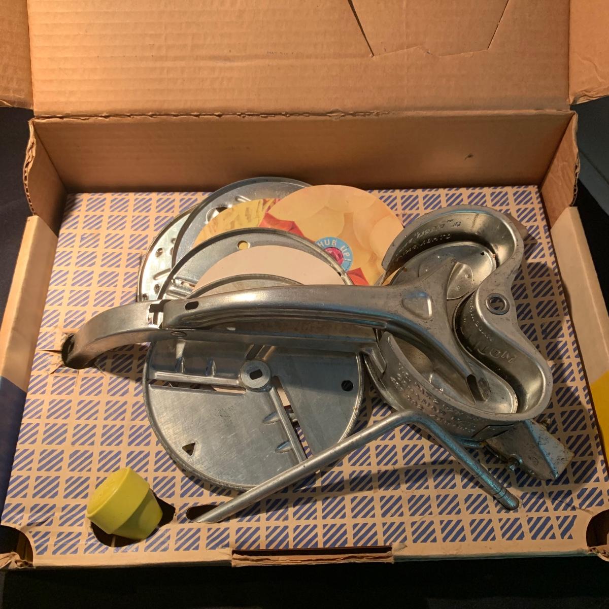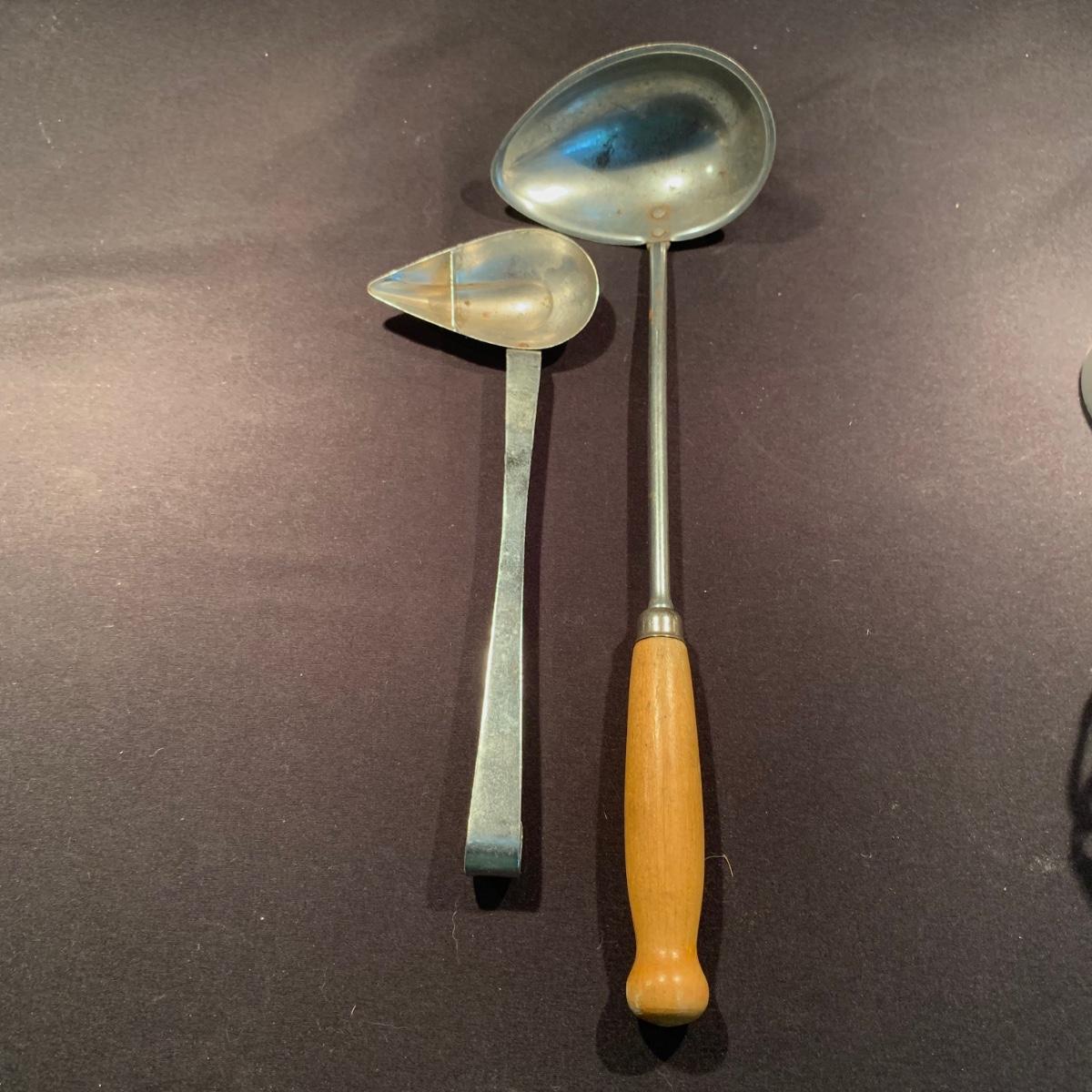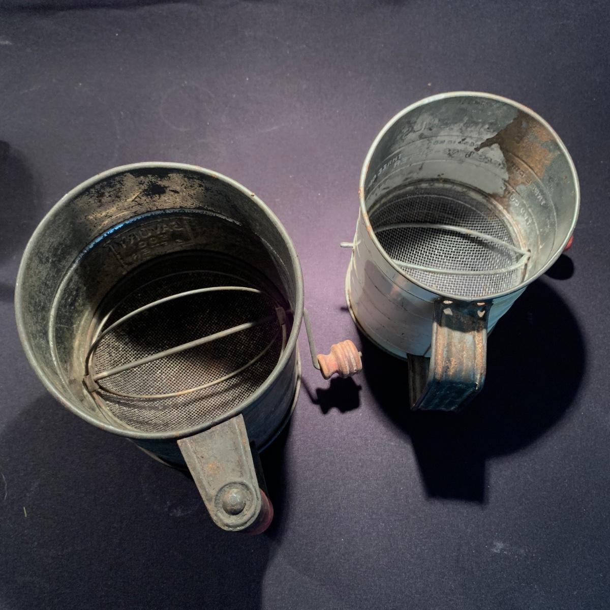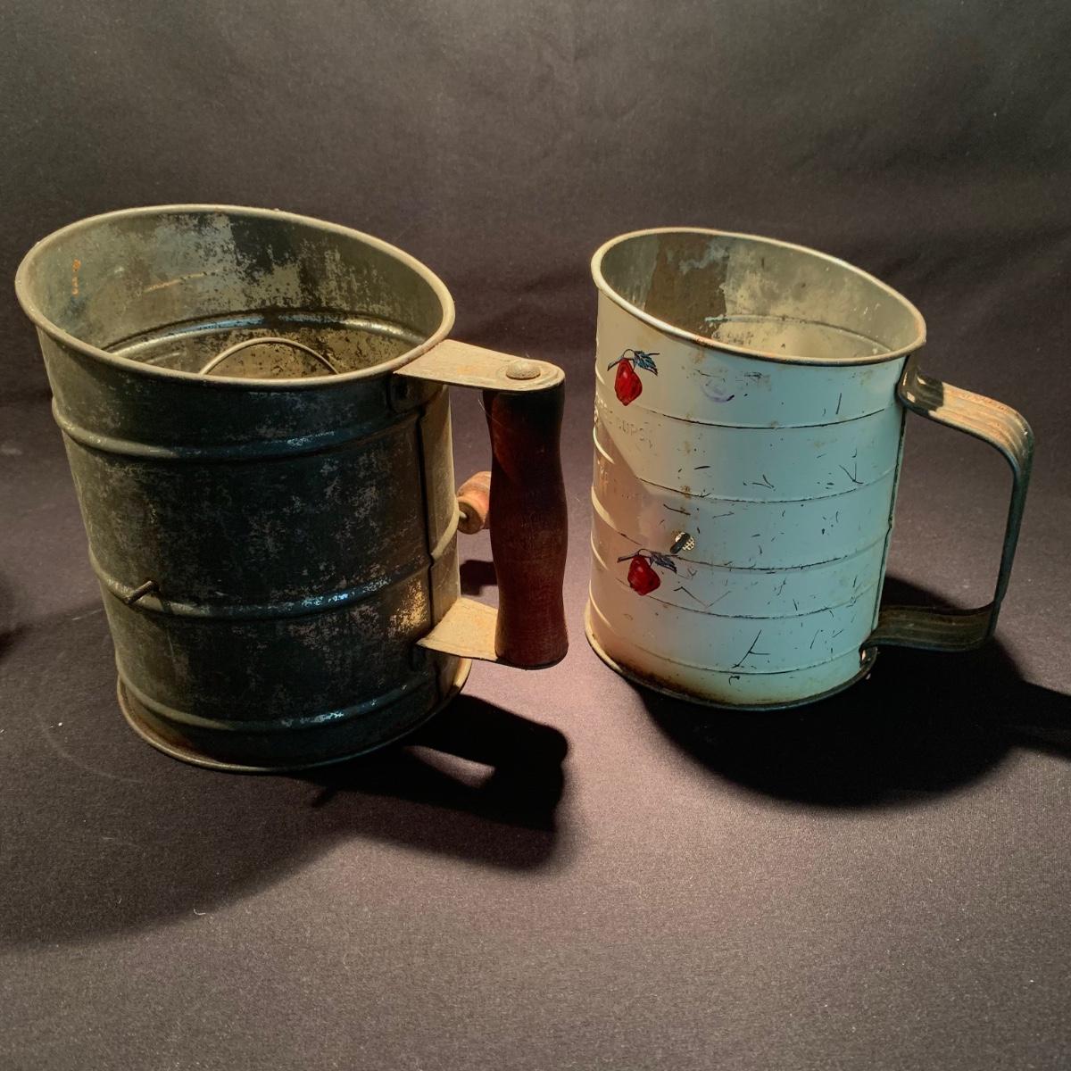 This lot includes a large variety of vintage kitchen tools, utensils, and accessories. Some of the items included are: a Mouli Salad Maker, sifters, manual high speed beaters, a Juicerette citrus juicer, spice tins, a zester, a nutmeg grater, biscuit cutters, a can opener, ladles, and more! Items are in good to fair condition. Items are made mostly of metal, wood, and/or glass and most appear to be built to last. Shipping available.