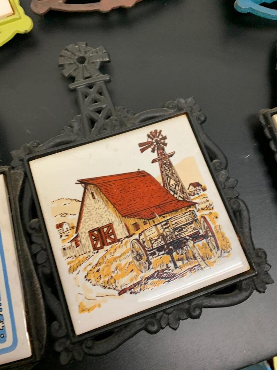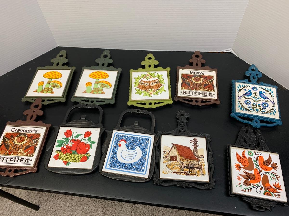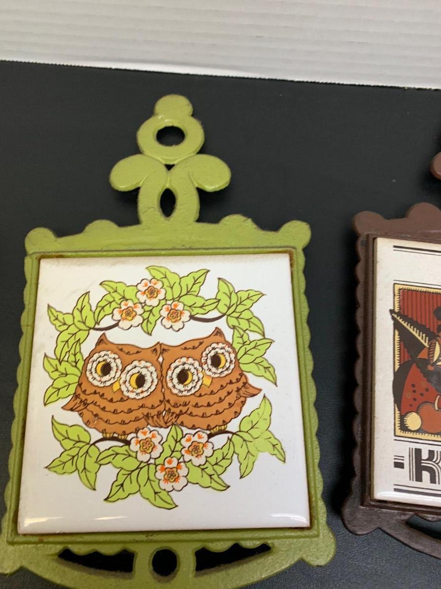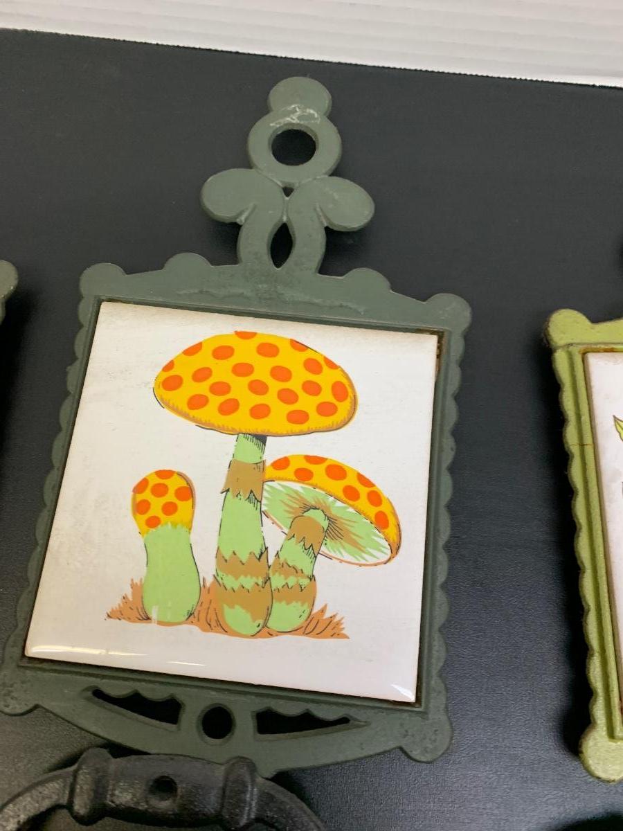 Vintage Kitchen Trivet Wall Hangers / Cast Iron Heat Plates