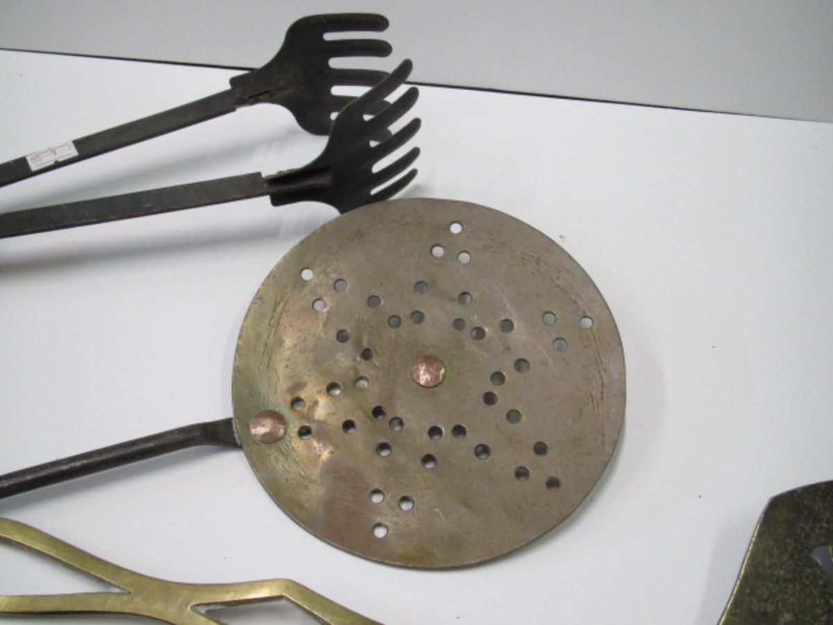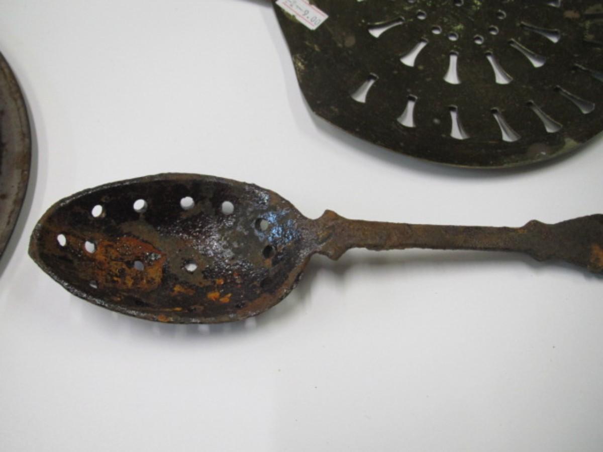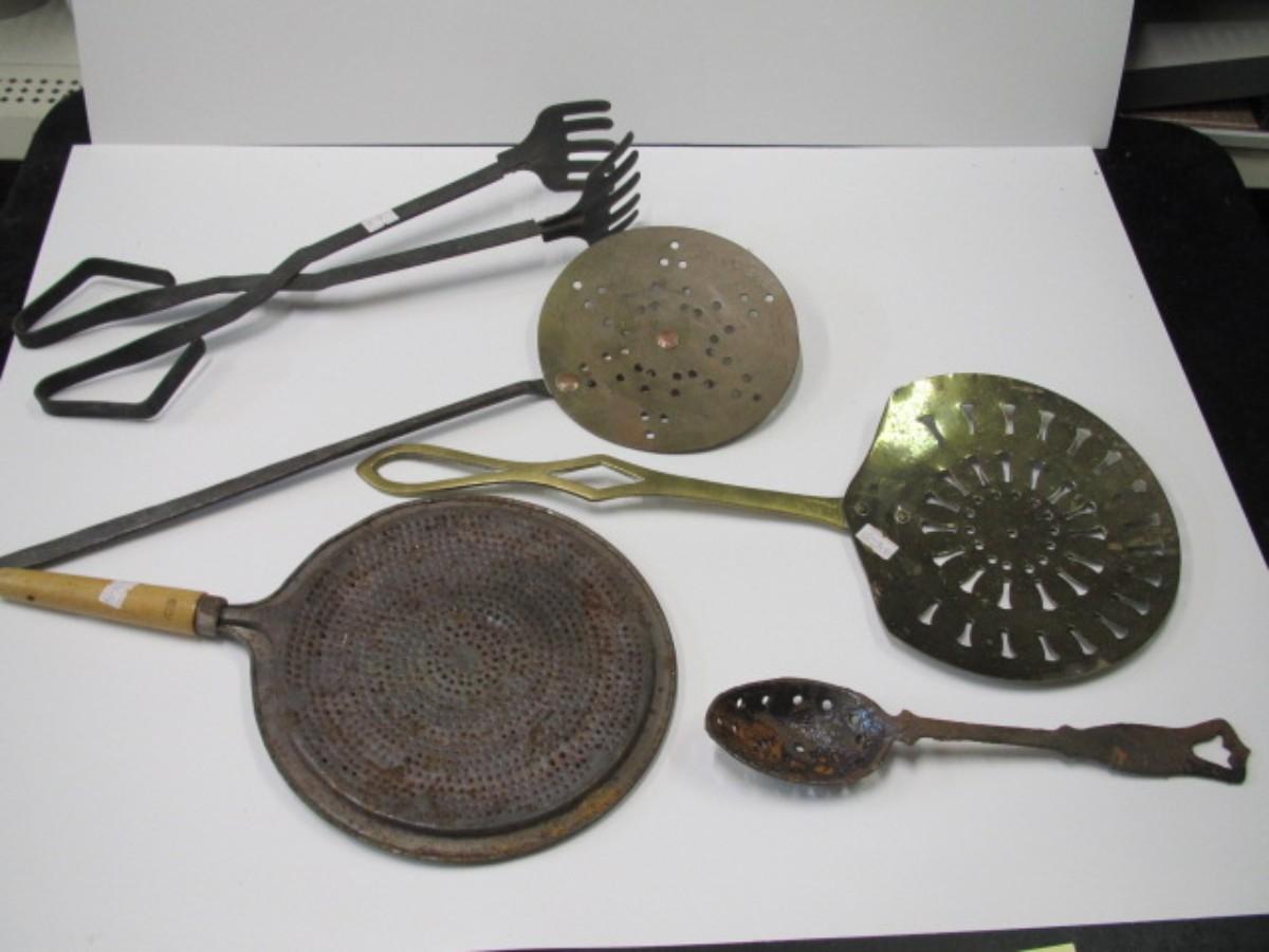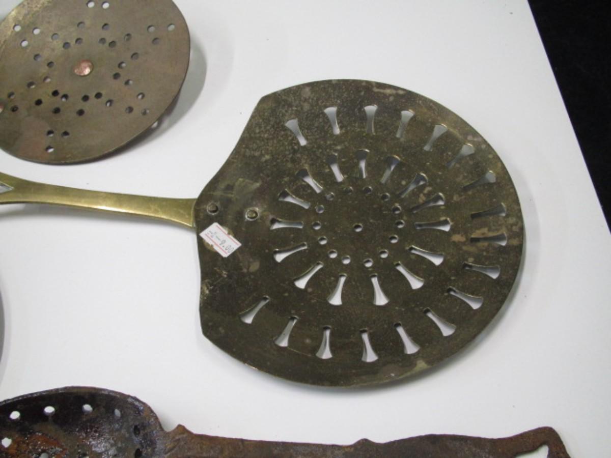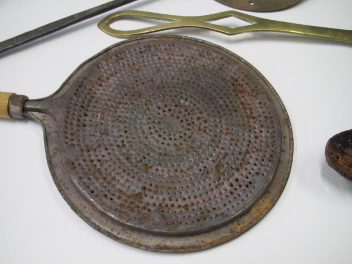 Vintage Kitchen Utensils Strainer Splatter Screen Victorian Brass Cream Skimmer Or Dairy Spoon