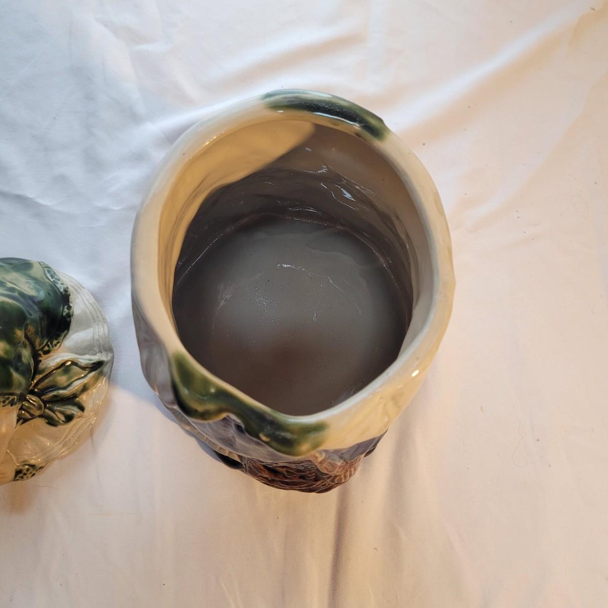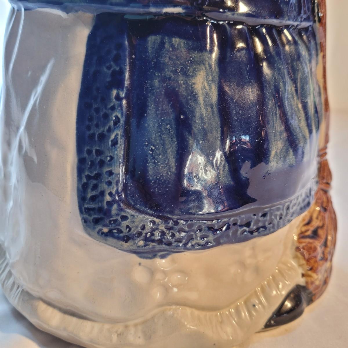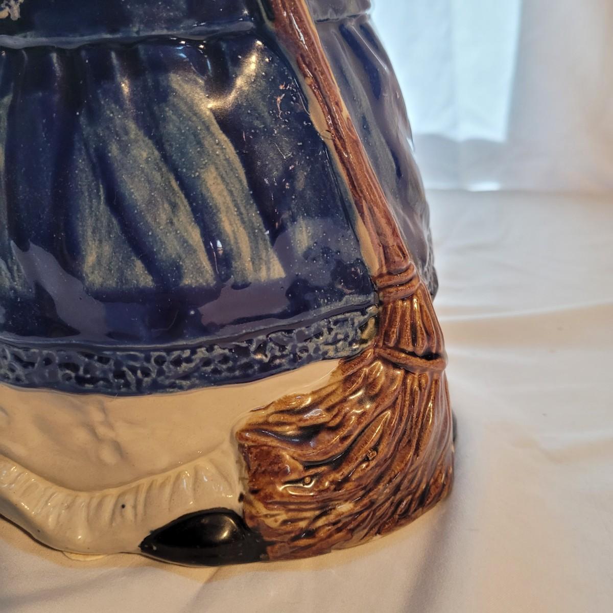 This ceramic vintage witch cookie jar is whimsical and endearing, with a smiling old witch with her broom. Looks similar to Strega Nona character. Measures approximately 12”H. Shipping available.