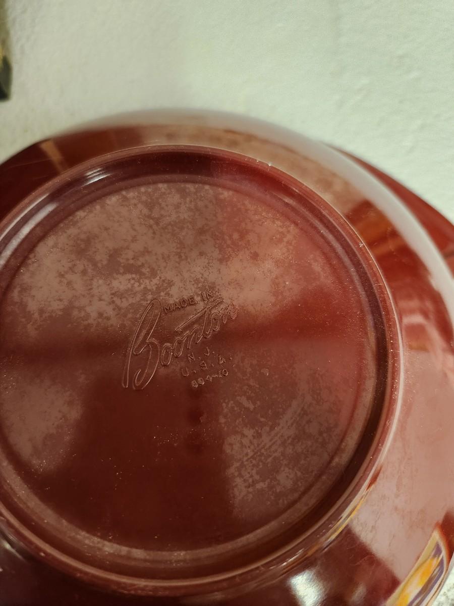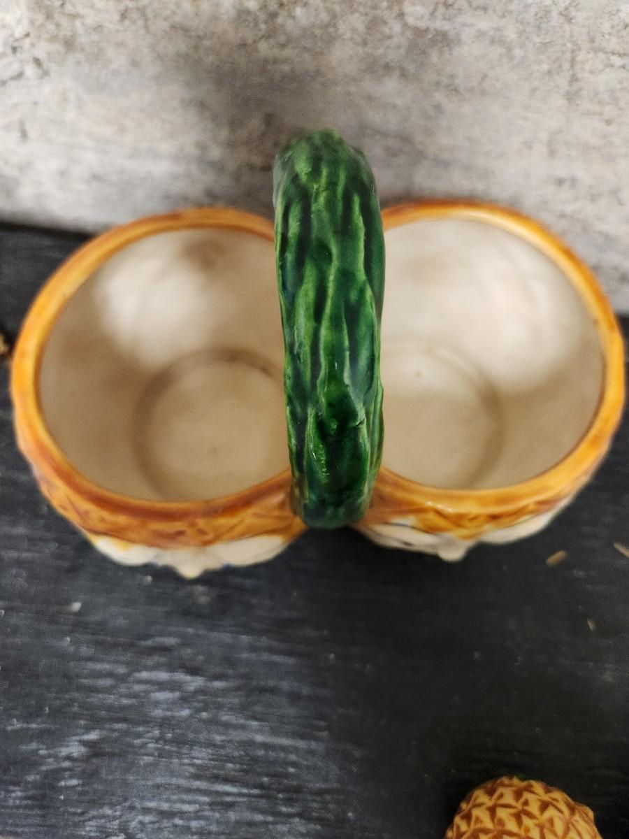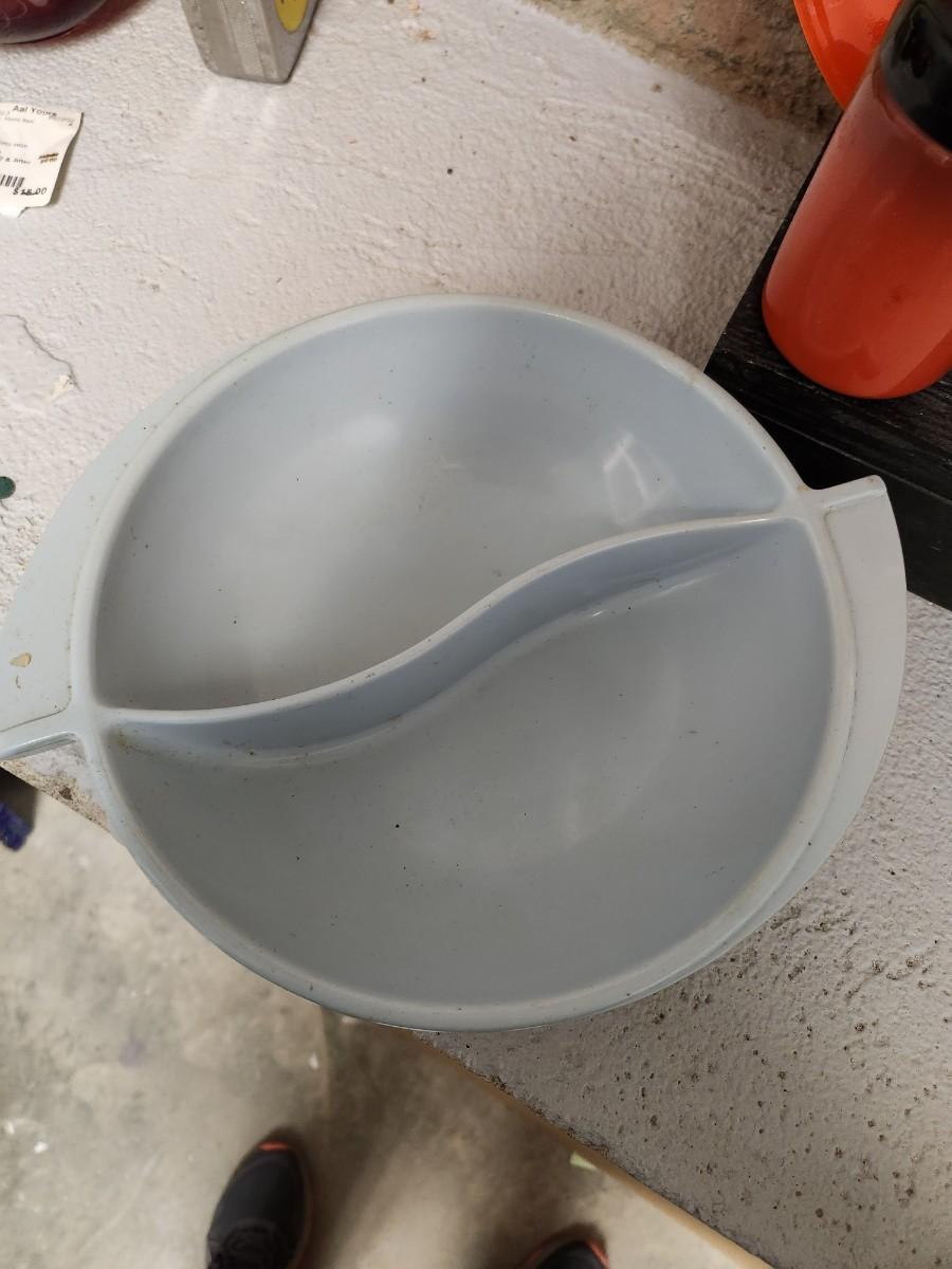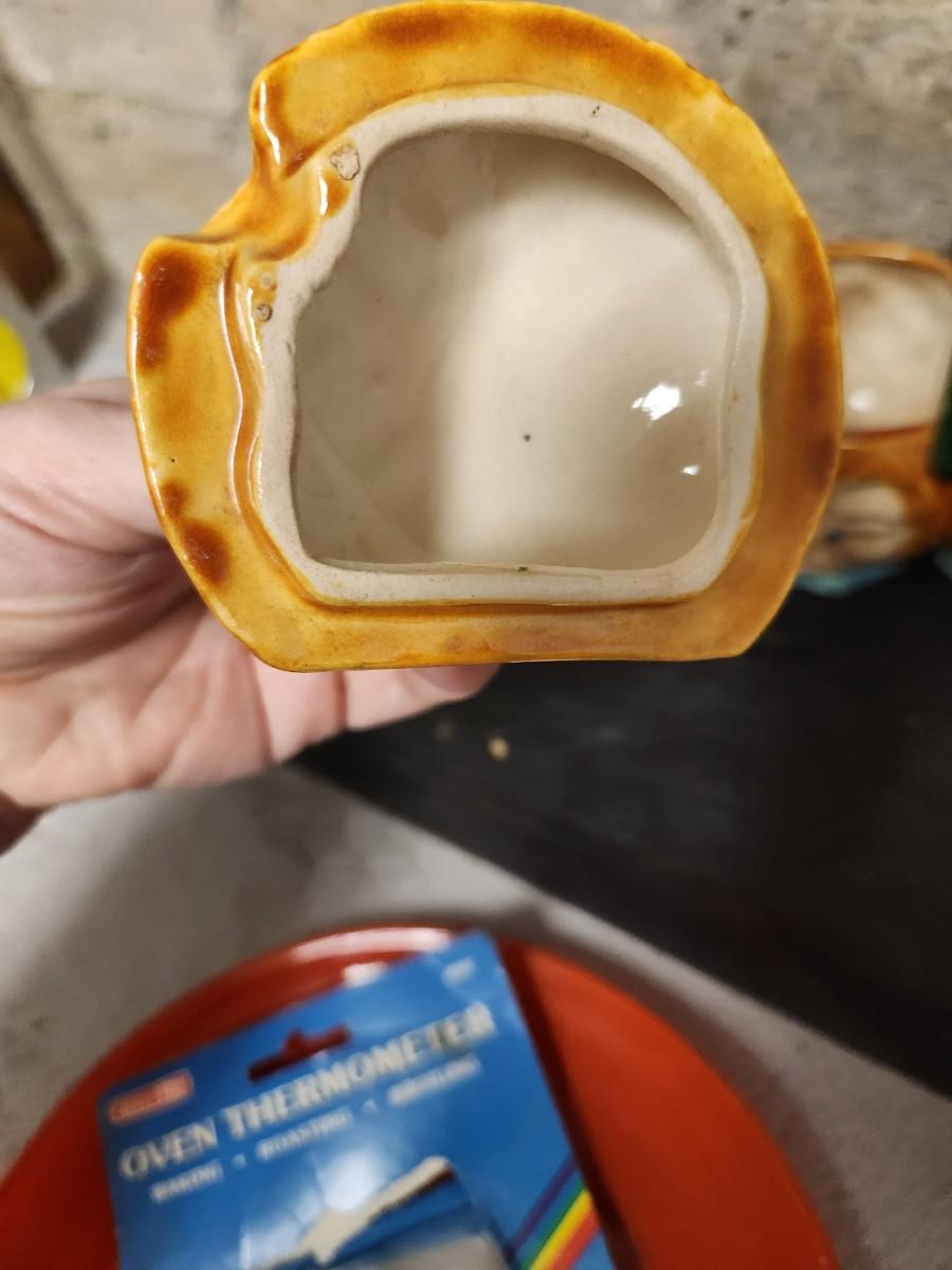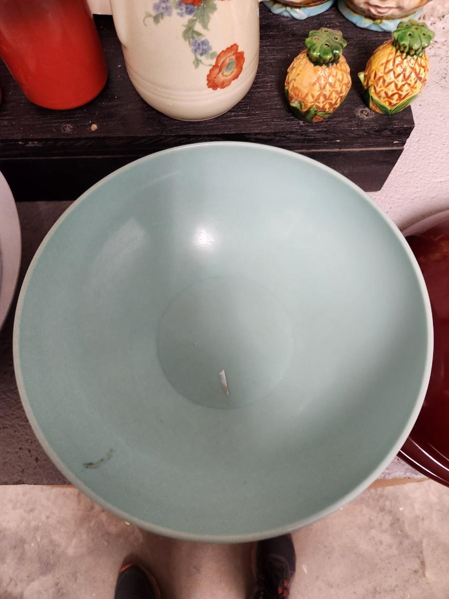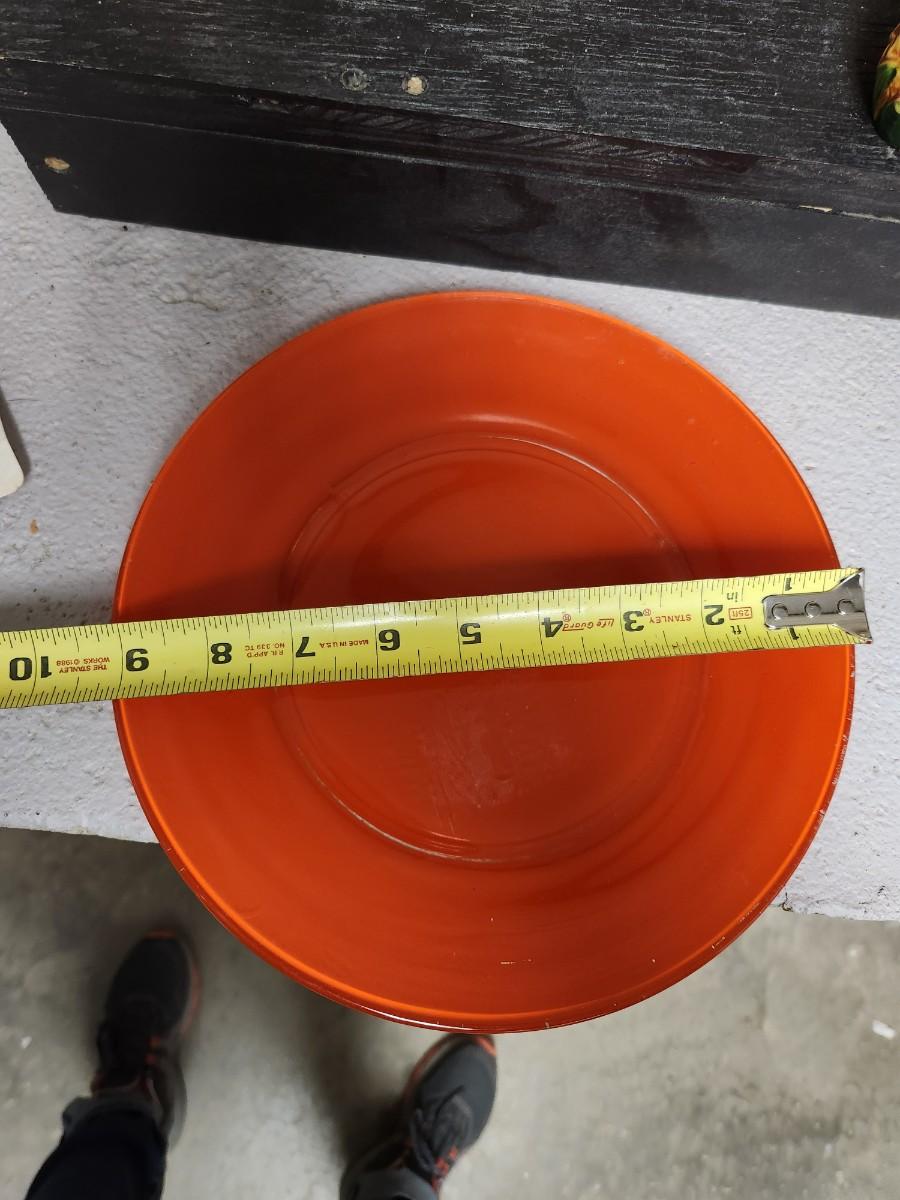 That anapomorphic pineapple condiment set cracks me up. Orange glass plate, orange aluminum salt and pepper shakers, Hall small teapot and 3 vintage Melamine bowls