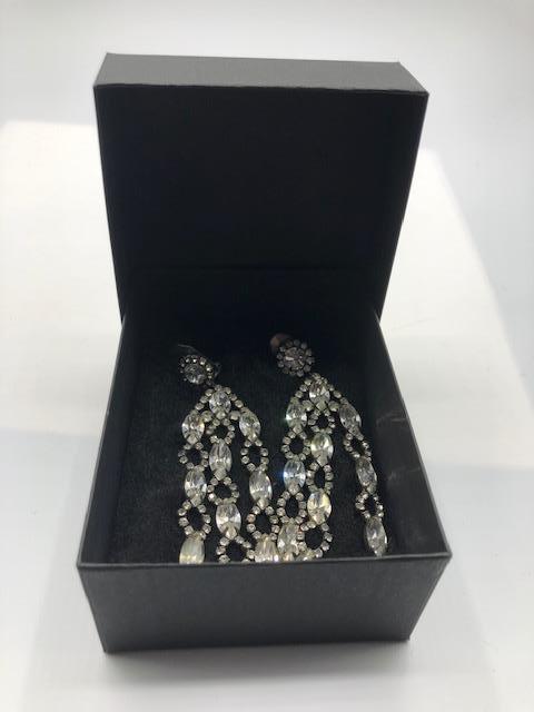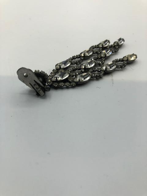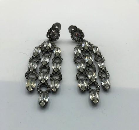 Vintage Kenneth Jay Lane (K.J.L.) Rhinestone Earrings. Black metal setting. Clip Style. Clear stones, look like there might be a couple discolored from age.