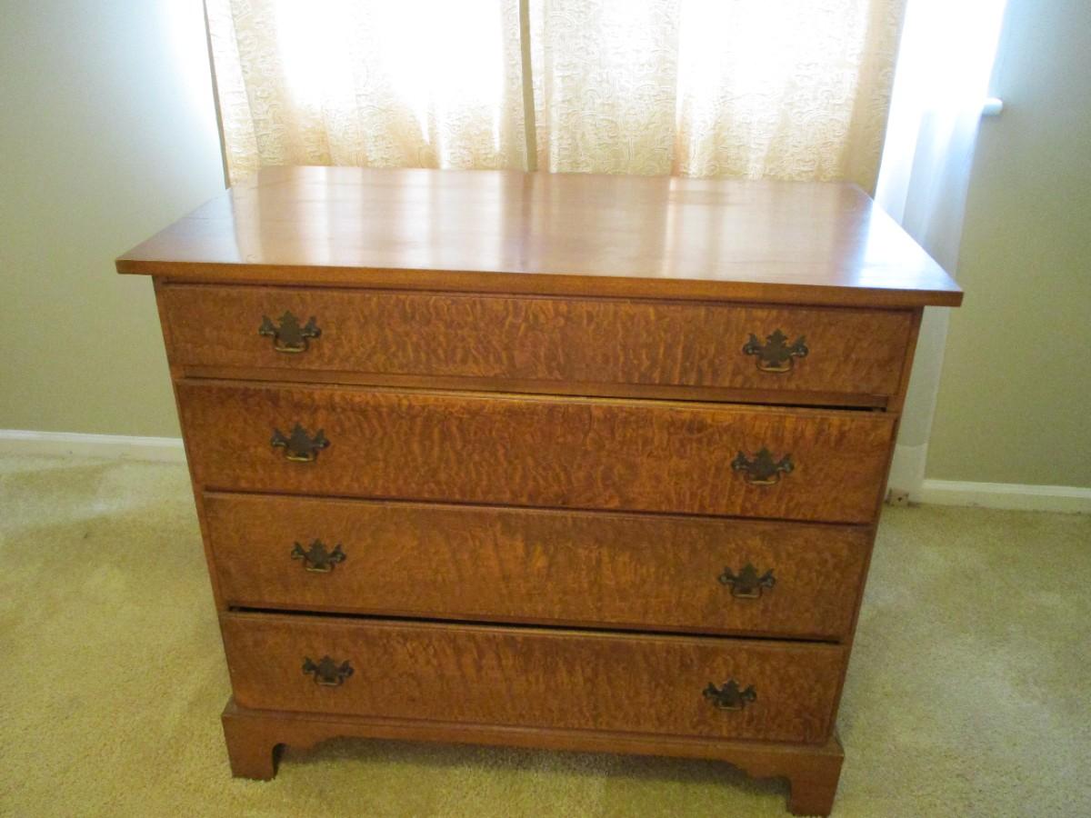Vintage Kling Colonial Tiger Maple 4 Drawer Dresser 40" x 21 1/2" x 35 1/2"