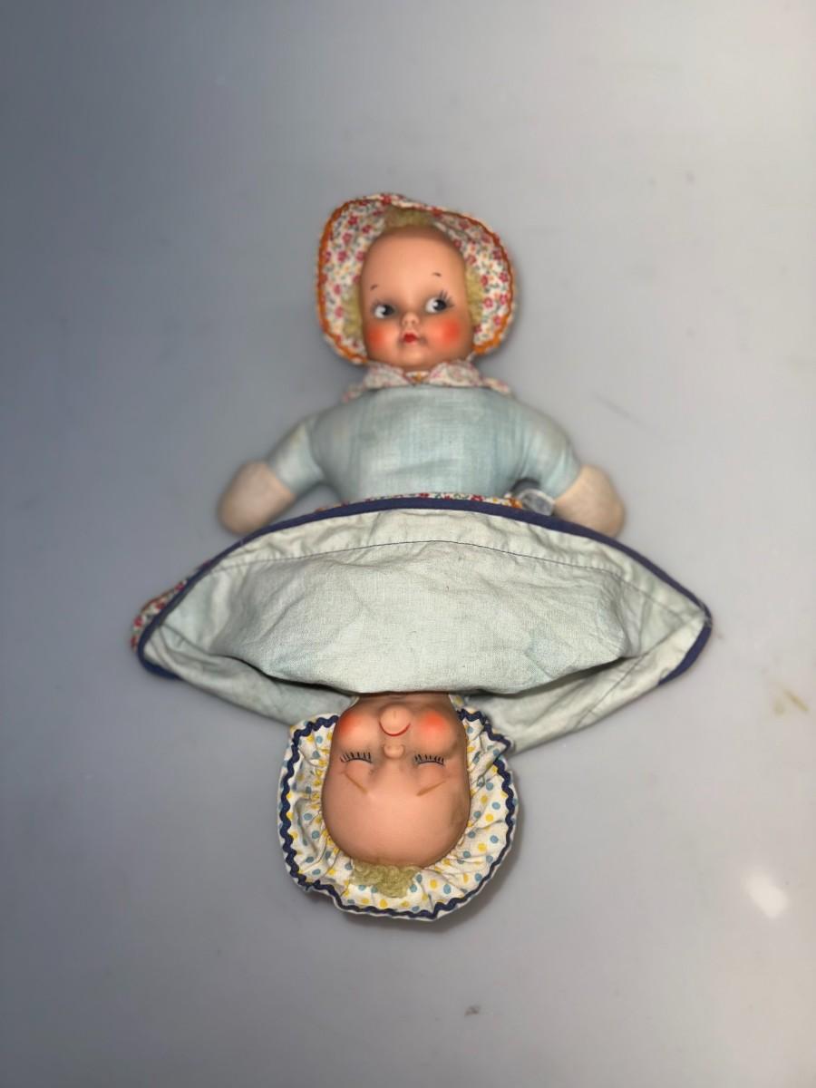 Vintage Knickerbocker Topsy Turvy Baby Doll Happy Sad Awake Asleep 12"-1960