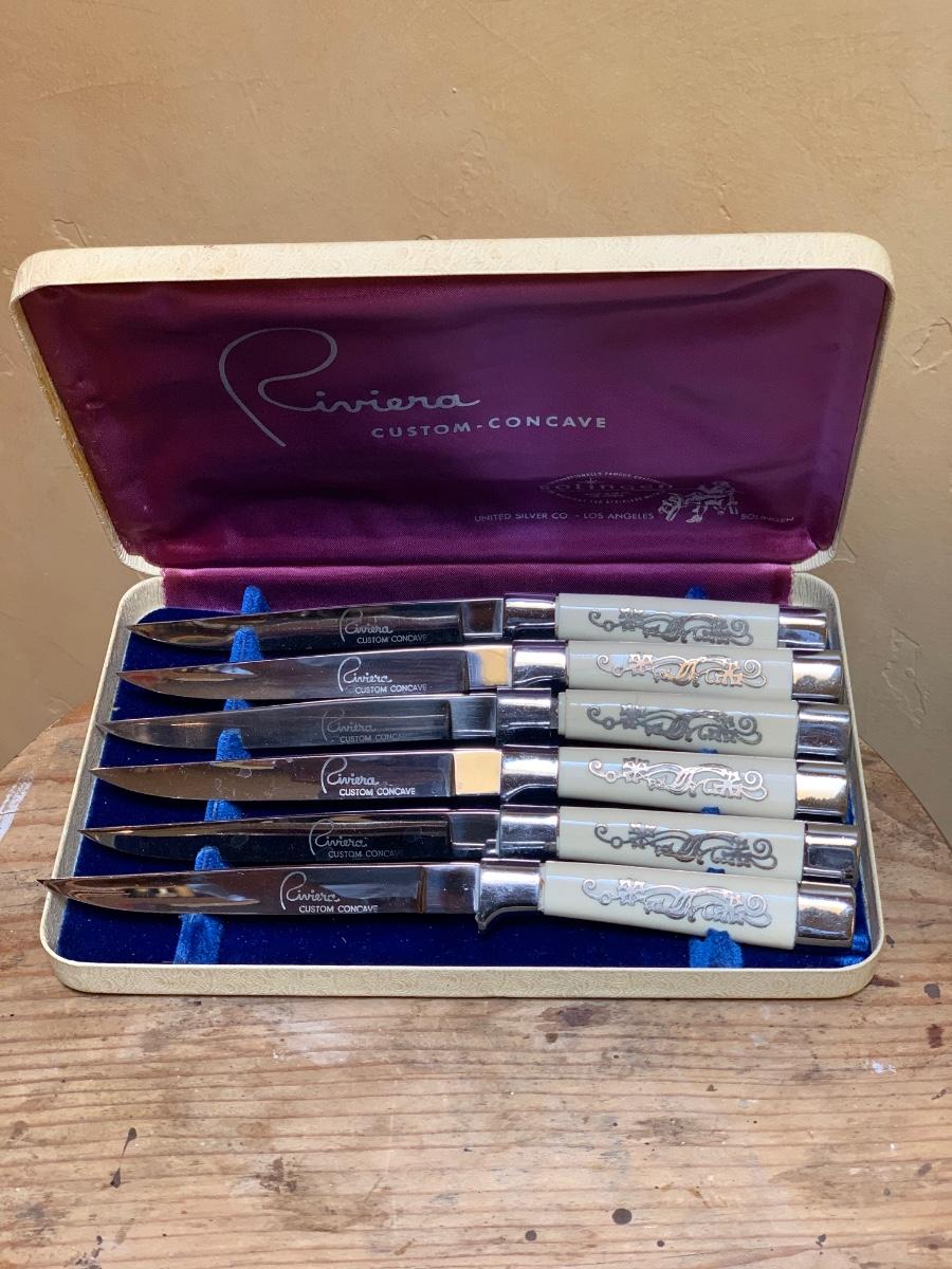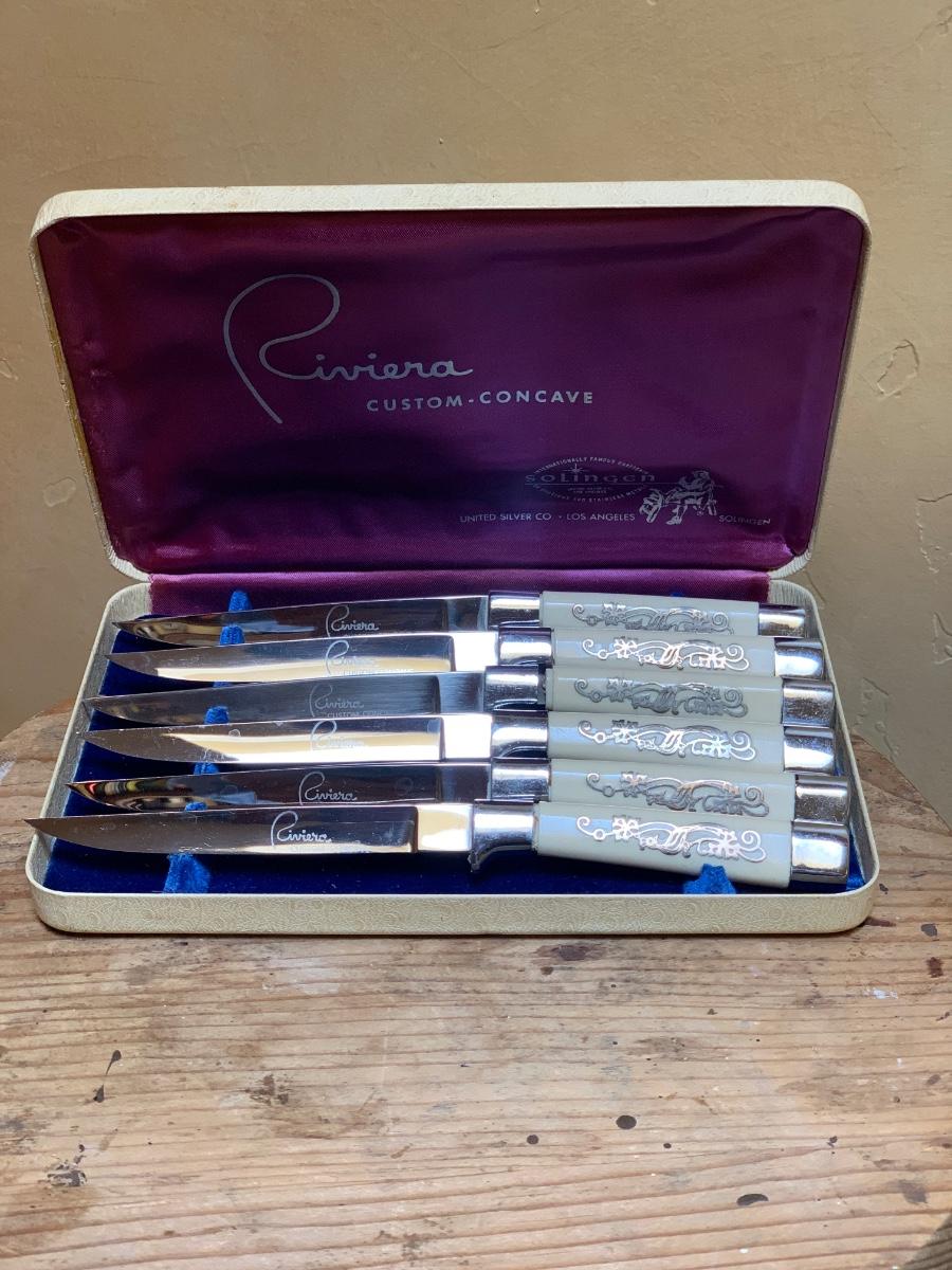 VINTAGE Set of 6 Riviera Custom Concave Germany Steak Knife Set