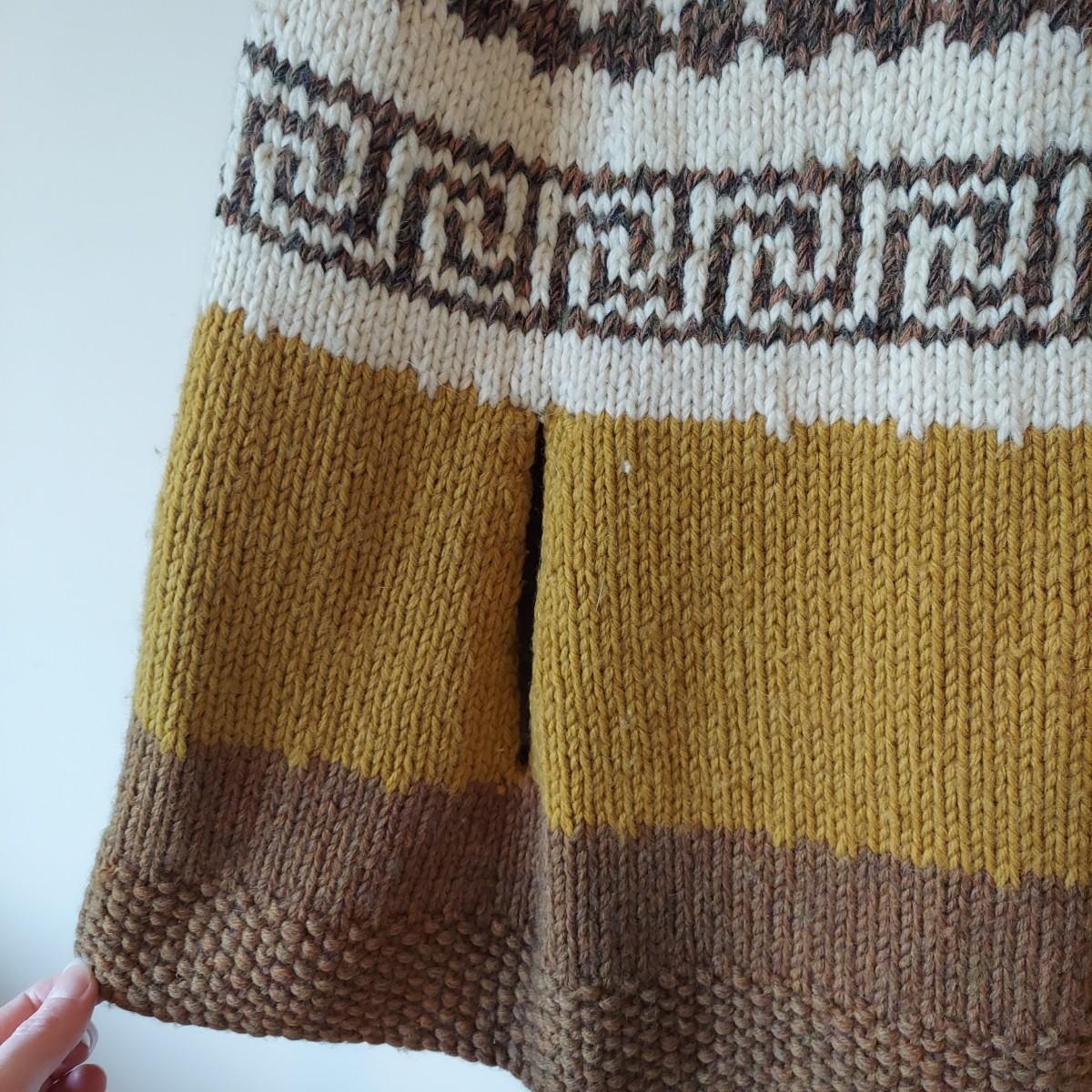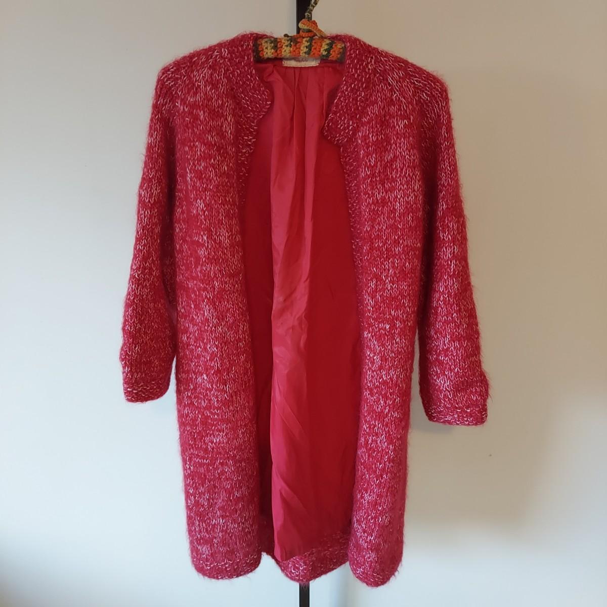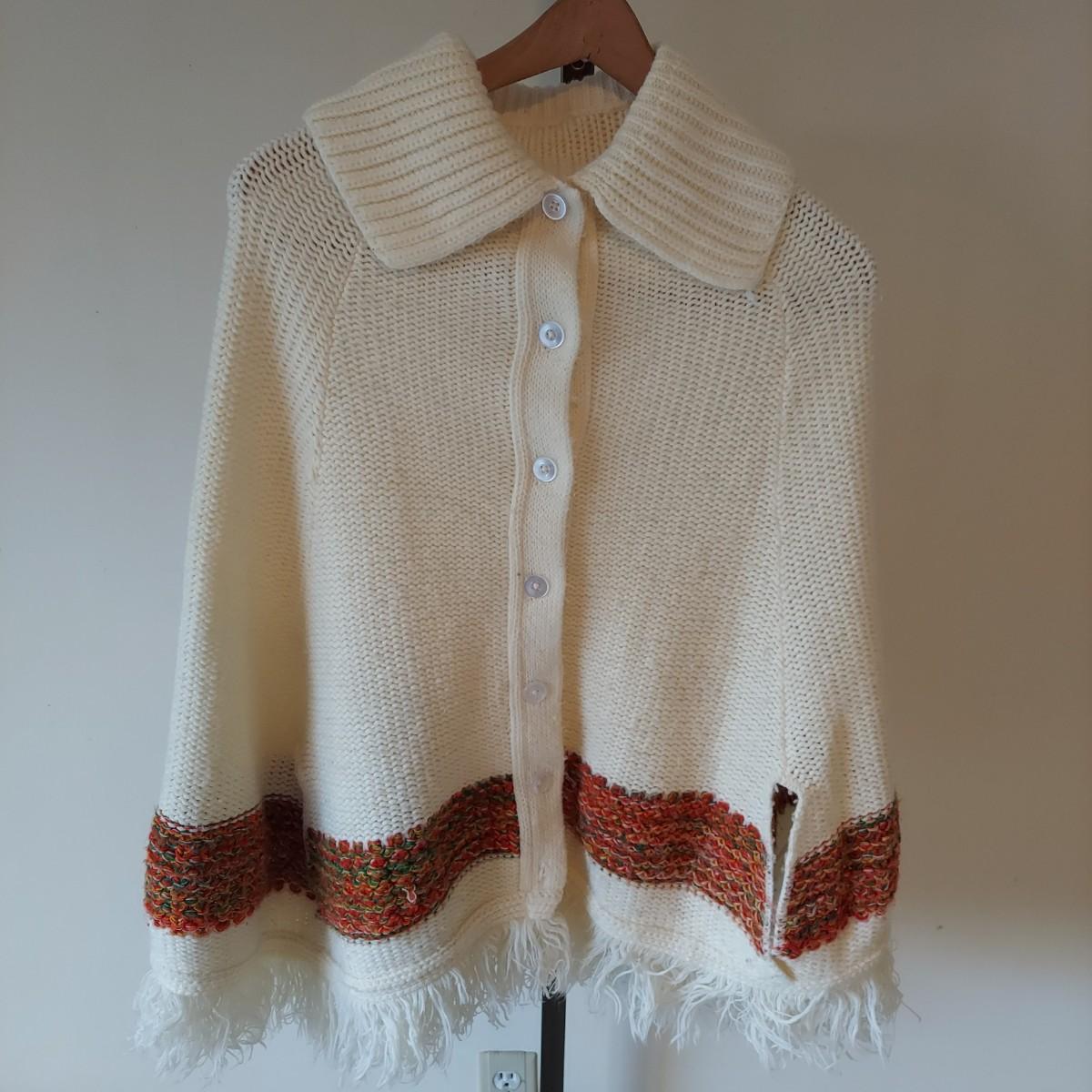 Lot includes two knit capes and three long, open-front cardigans. All items appear to be handmade and do not have size tags. Fit is roughly small to medium. Please see photos for details. Shipping available