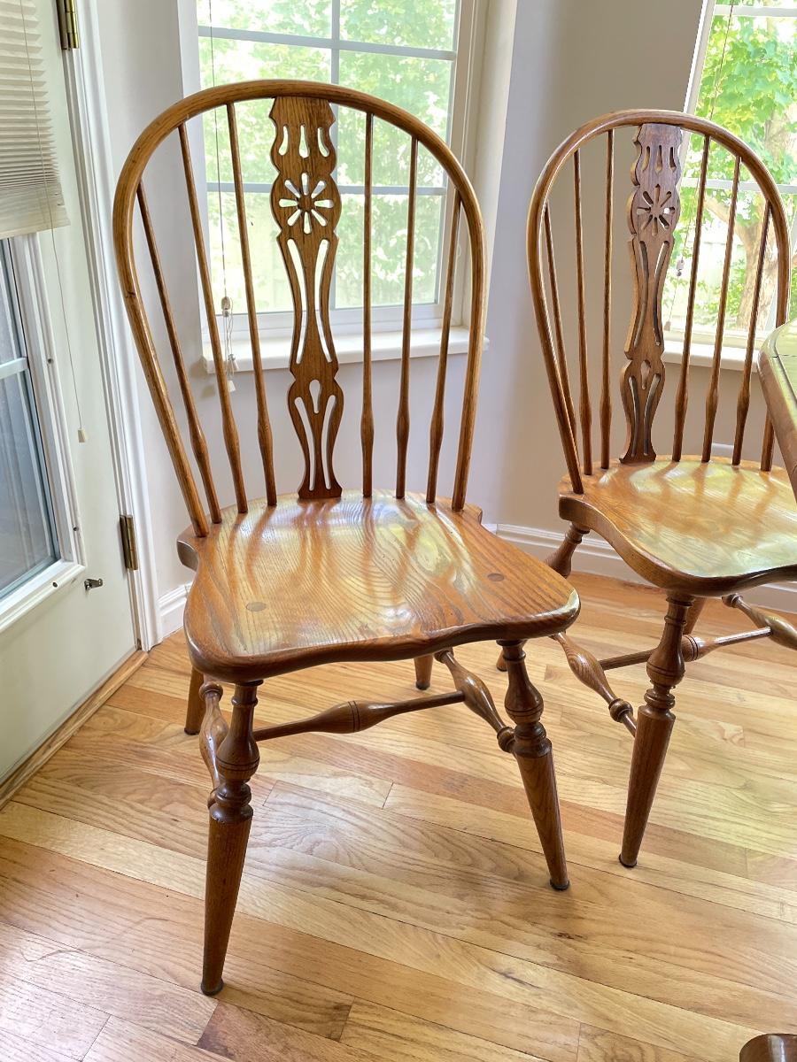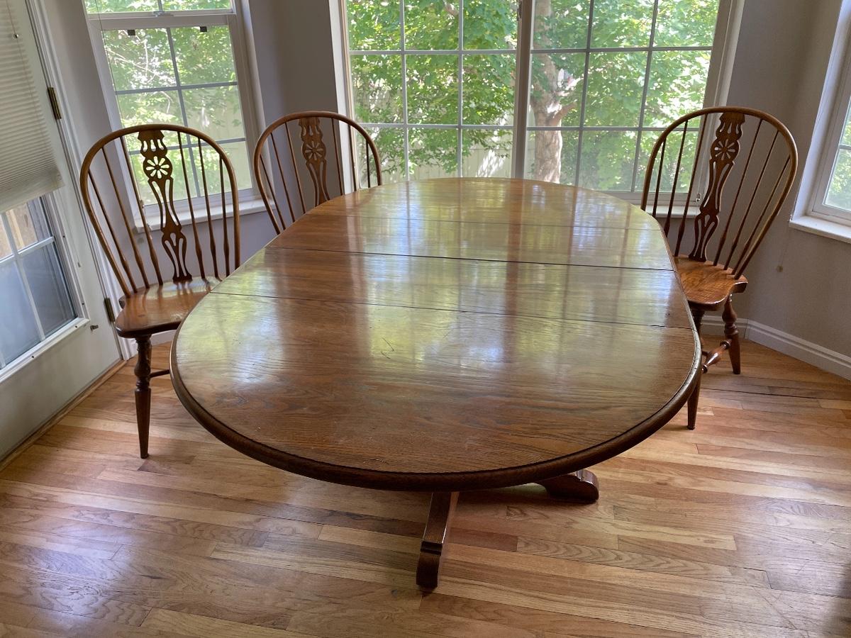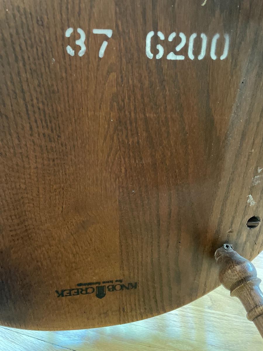 #132 Vintage KNOB CREEK Oak Pedestal Table w/3 Matching Chairs