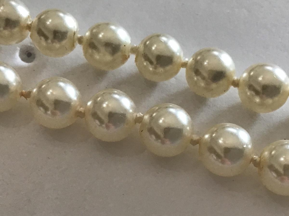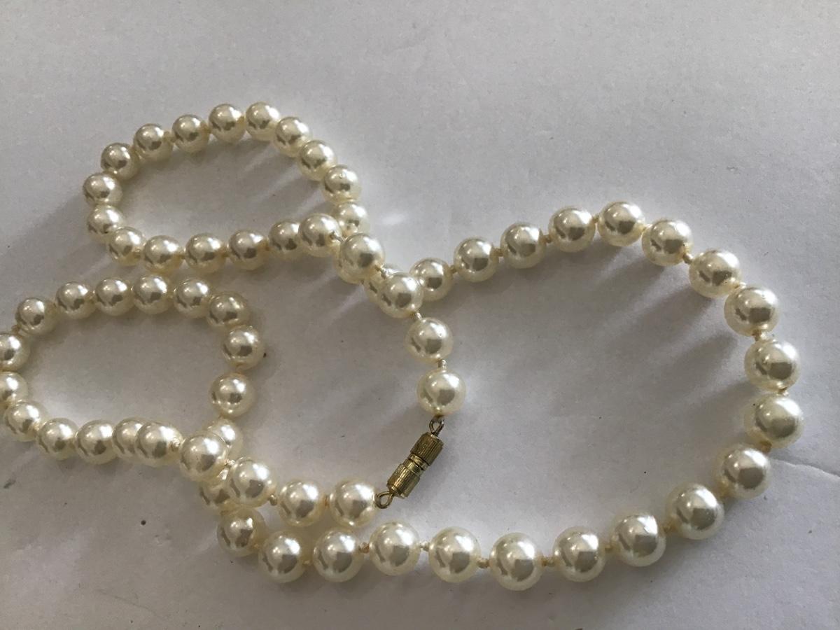 Vintage Knotted Barrel Clasp Pearl like Necklace. Nice