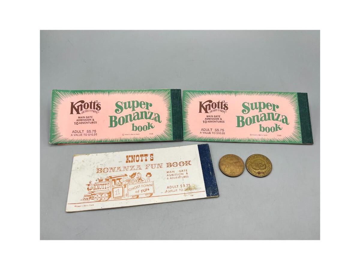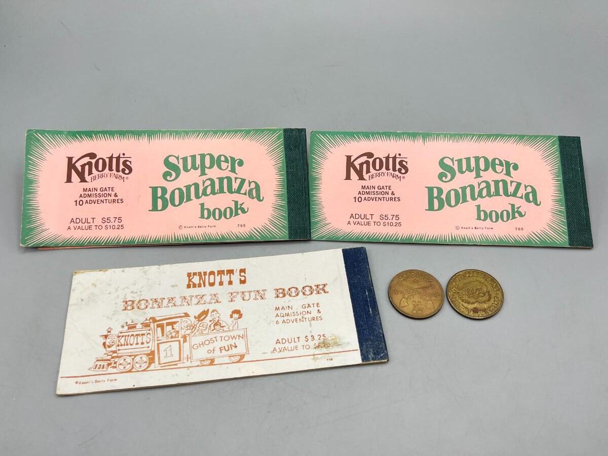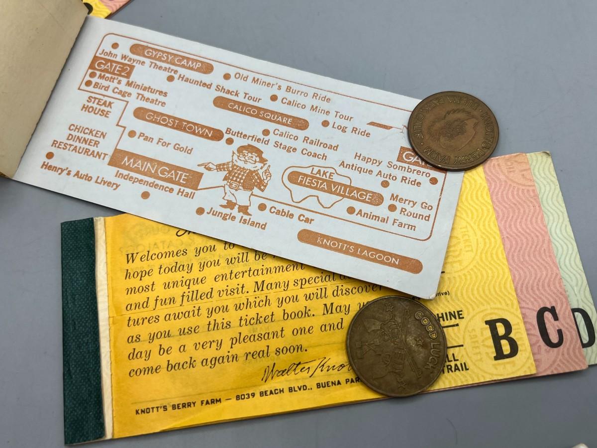 Vintage Knott's Berry Farm Ride Ticket Books Tokens Bonanza Fun Books. Three books and two tokens.