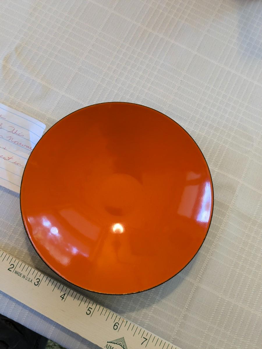Danish Modern Orange Enamel Krenit Bowl by Herbert Krenchel