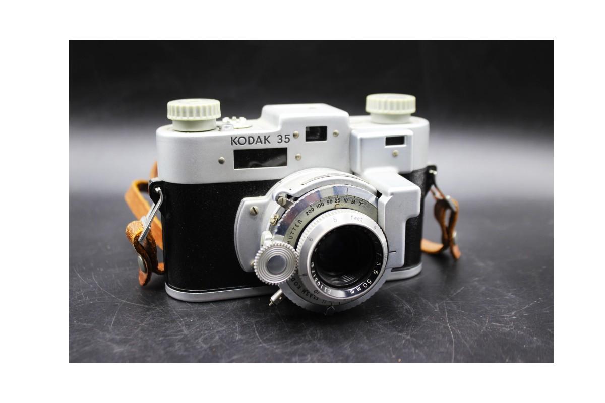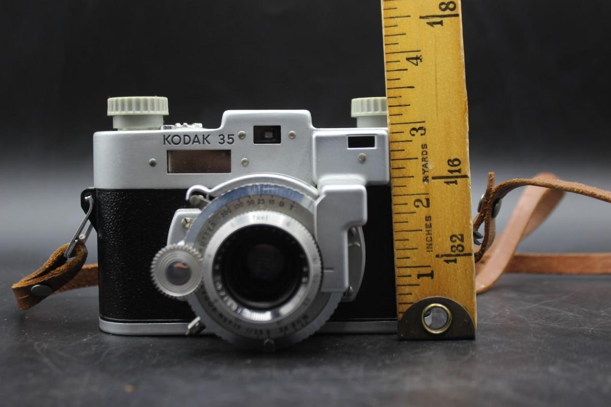 Vintage Kodak 35 Rangefinder 35mm Film Camera with Leather Case & Straps, there is no significant damage to the body of the camera and is in good vintage condition. The leather straps are still in good condition and show no signs of significant ripping or tearing. Check pictures for more details, the camera has not been tested.