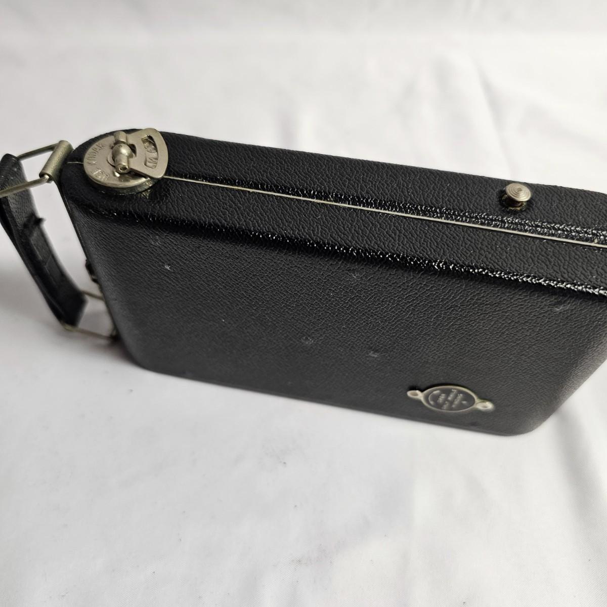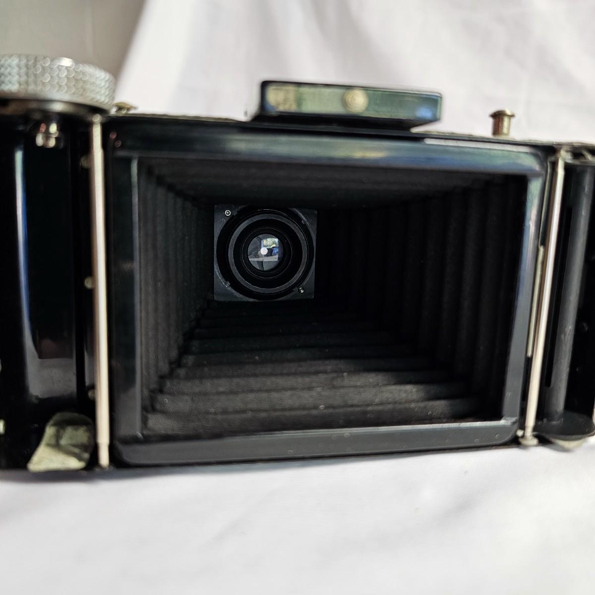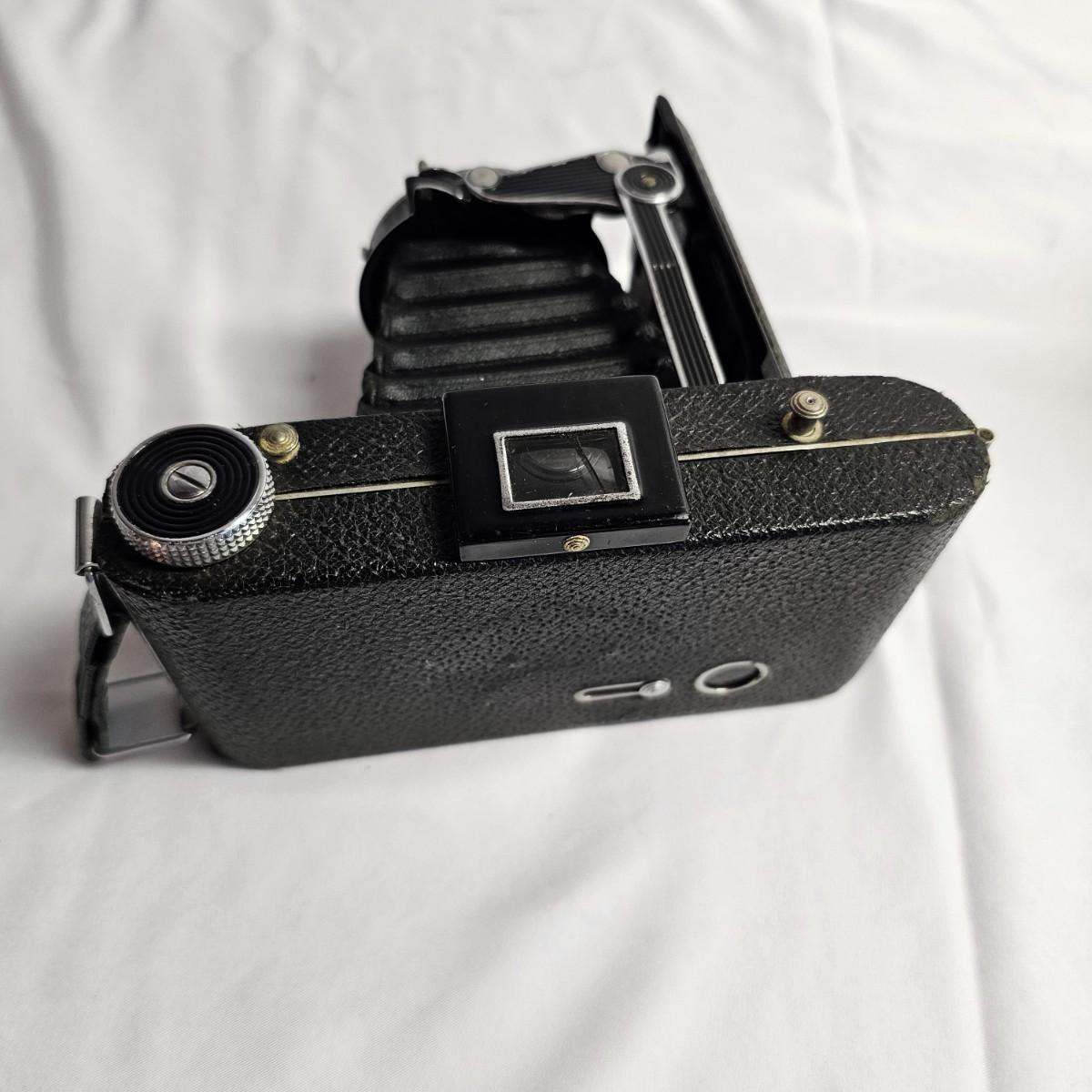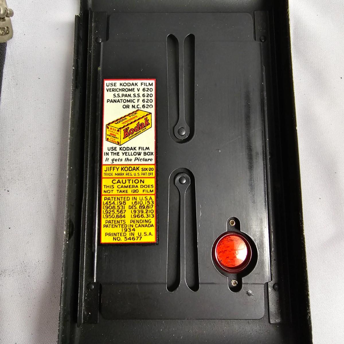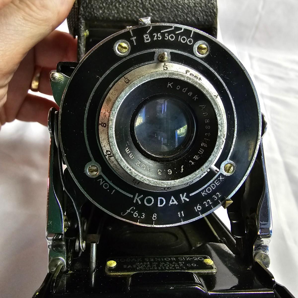 Four vintage Kodak cameras. One Kodak Senior Six-20 fold up with an Anastigmat f:6.3 105mm lens. Uses 620 film, has crack on top viewfinder. Also one Jiffy Kodak Six-20 with Twindar lens, also uses 620 film. One Kodak Dualflex camera with strap in original box, uses 620 film. Lastly a Kodak Instamatic 100 camera, uses Kodak film cartridge. See photos for details. Shipping available.