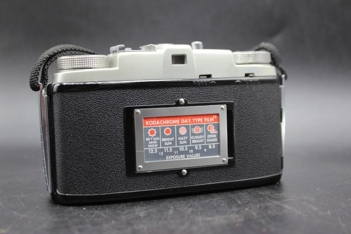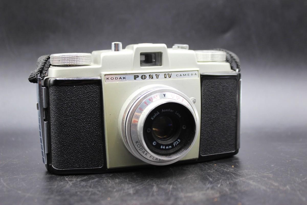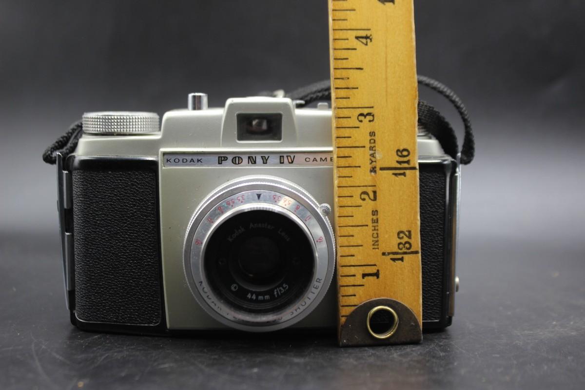 Vintage Kodak Pony IV Camera 35mm with Leather Case & Exposure Cards, there is no significant damage to the body of the camera and is in good vintage condition. There is some crimping on the leather case, the case also comes with small exposure value cards. Check pictures for more details, has not been tested.
