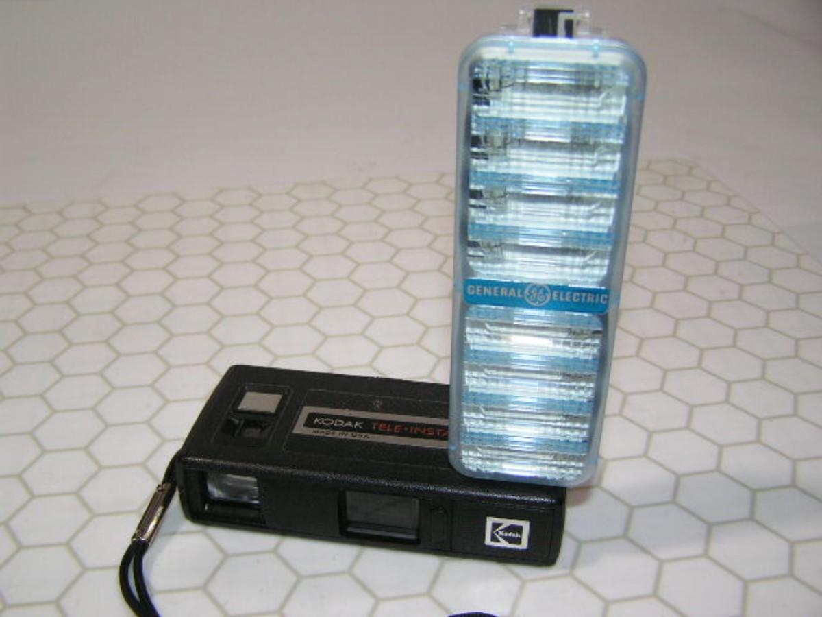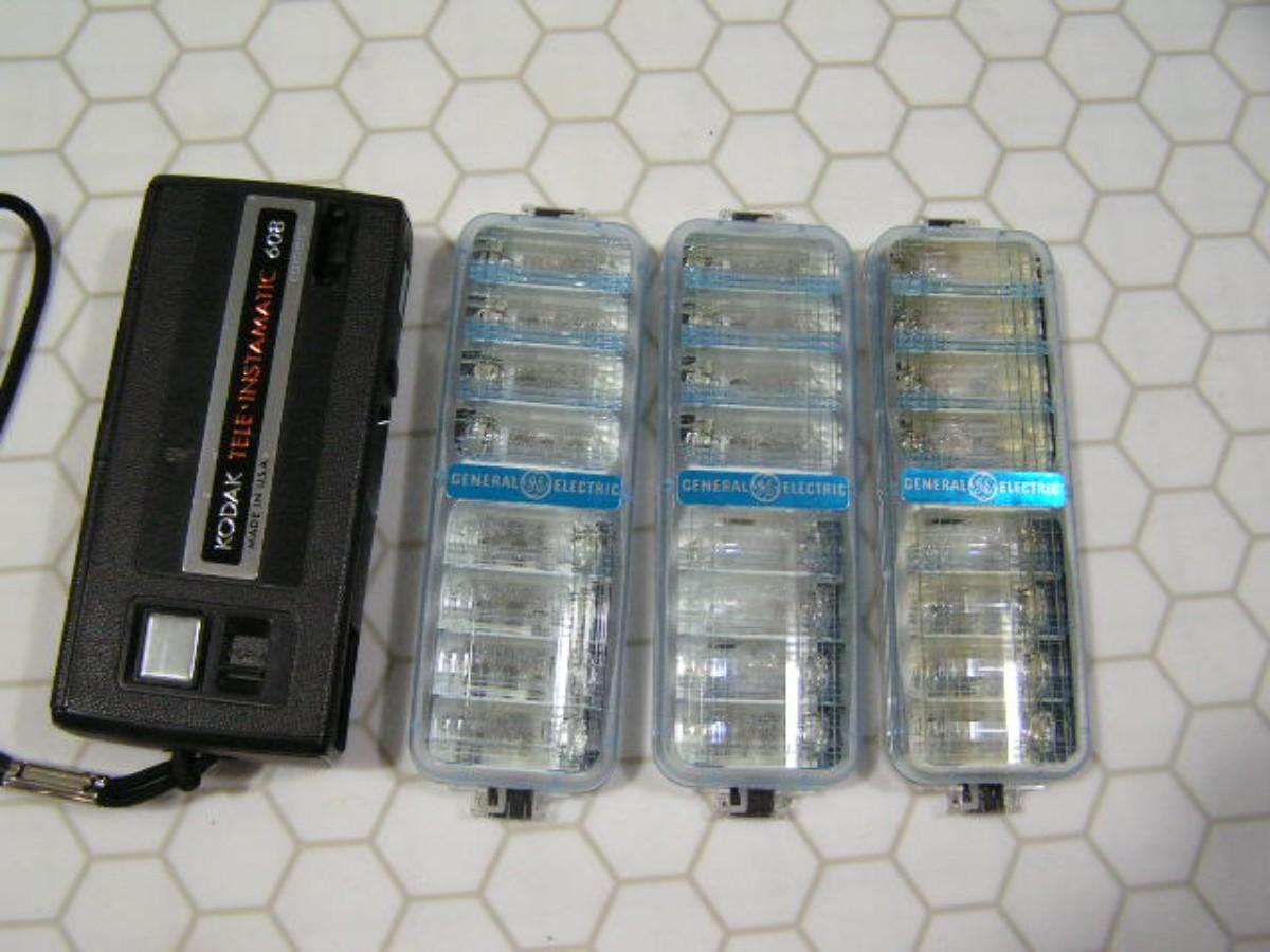 Vintage Kodak Tele-Instamatic 608 pocket camera. Has two lenses, a wide angel & a telephoto. W/manual & carry case, 3 “Flip-Flash” bars (one as new & two ½ used). Has partially used roll of film (cassette) included. Great collectible!