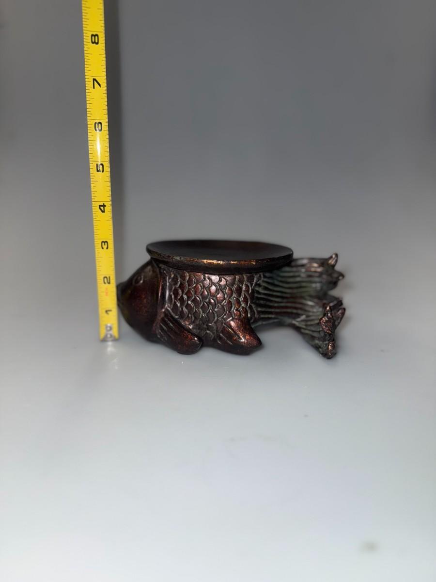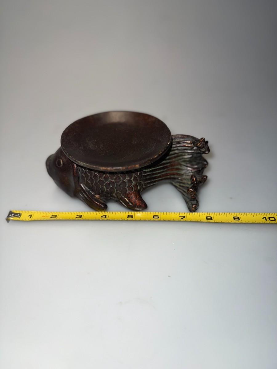 This beautiful vintage koi fish candle holder is a stunning piece that combines art and functionality. Featuring a gracefully designed koi fish, this candle holder adds a touch of elegance and tranquility to any setting. Crafted with intricate detailing and a lovely finish, it is perfect for displaying your favorite candles while creating a warm and inviting atmosphere. Ideal for both indoor and outdoor use, this unique candle holder is a wonderful addition to your home decor or a thoughtful gift for anyone who appreciates the beauty of aquatic life.
