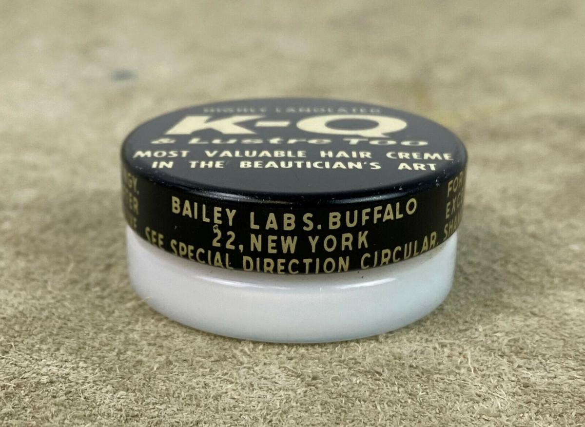 vintage K-Q & LUSTRE TOO HAIR CREME ADVERTISING JAR