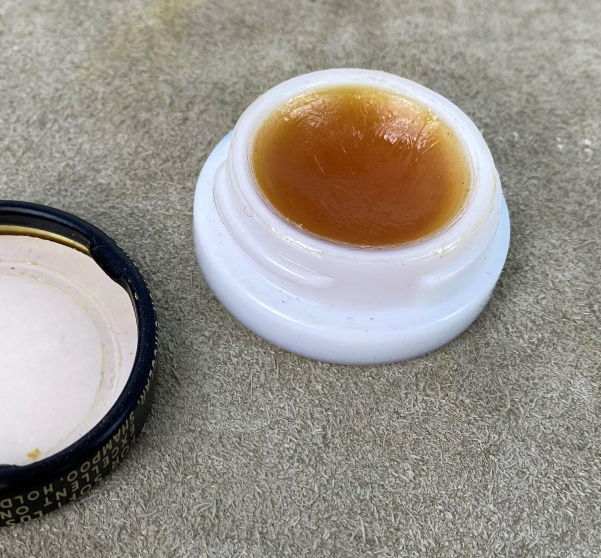 Here with most of its original contents is a small milk glass advertising jar for K-Q & LUSTRE TOO hair conditioning creme...This product was trademarked in 1957...from Bailey Laboratories