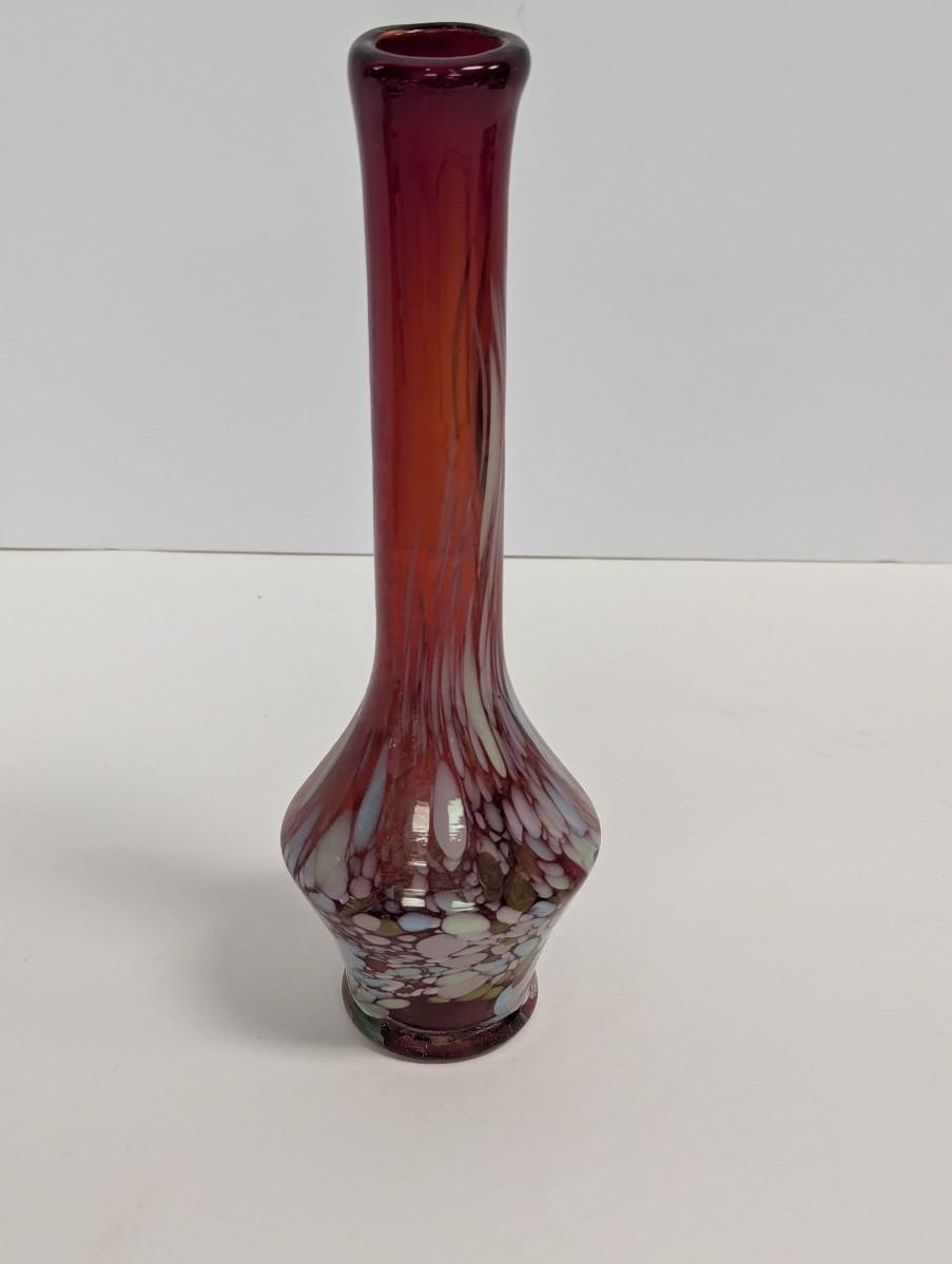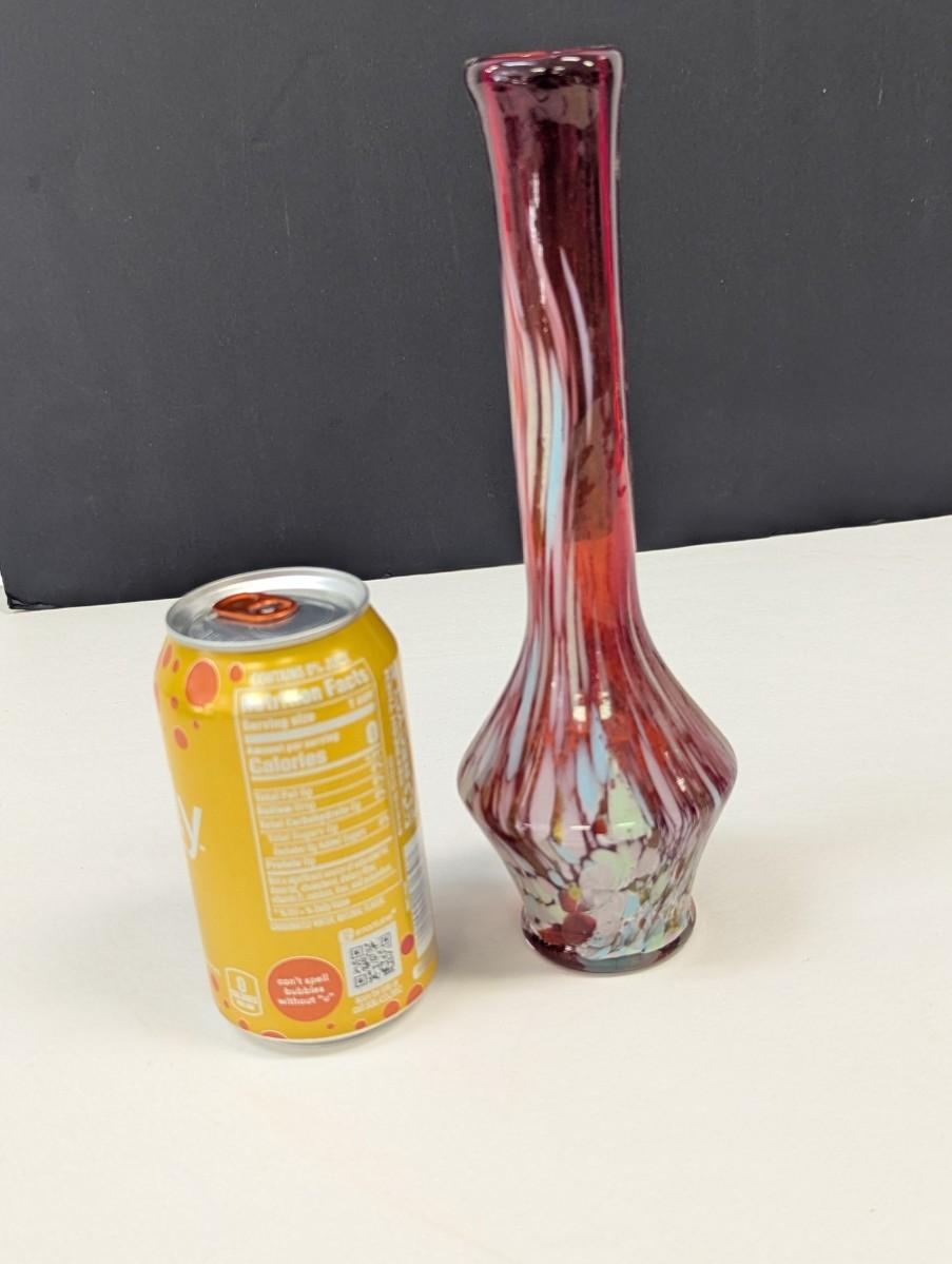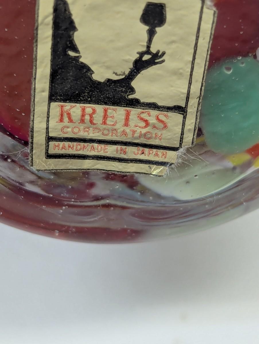 Vintage Kreiss Glass Vase Yellow With Controlled Swirl Hand Blown Art Glass Made Japan