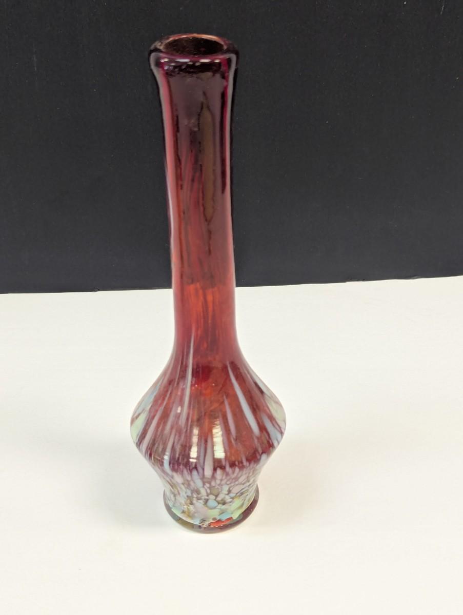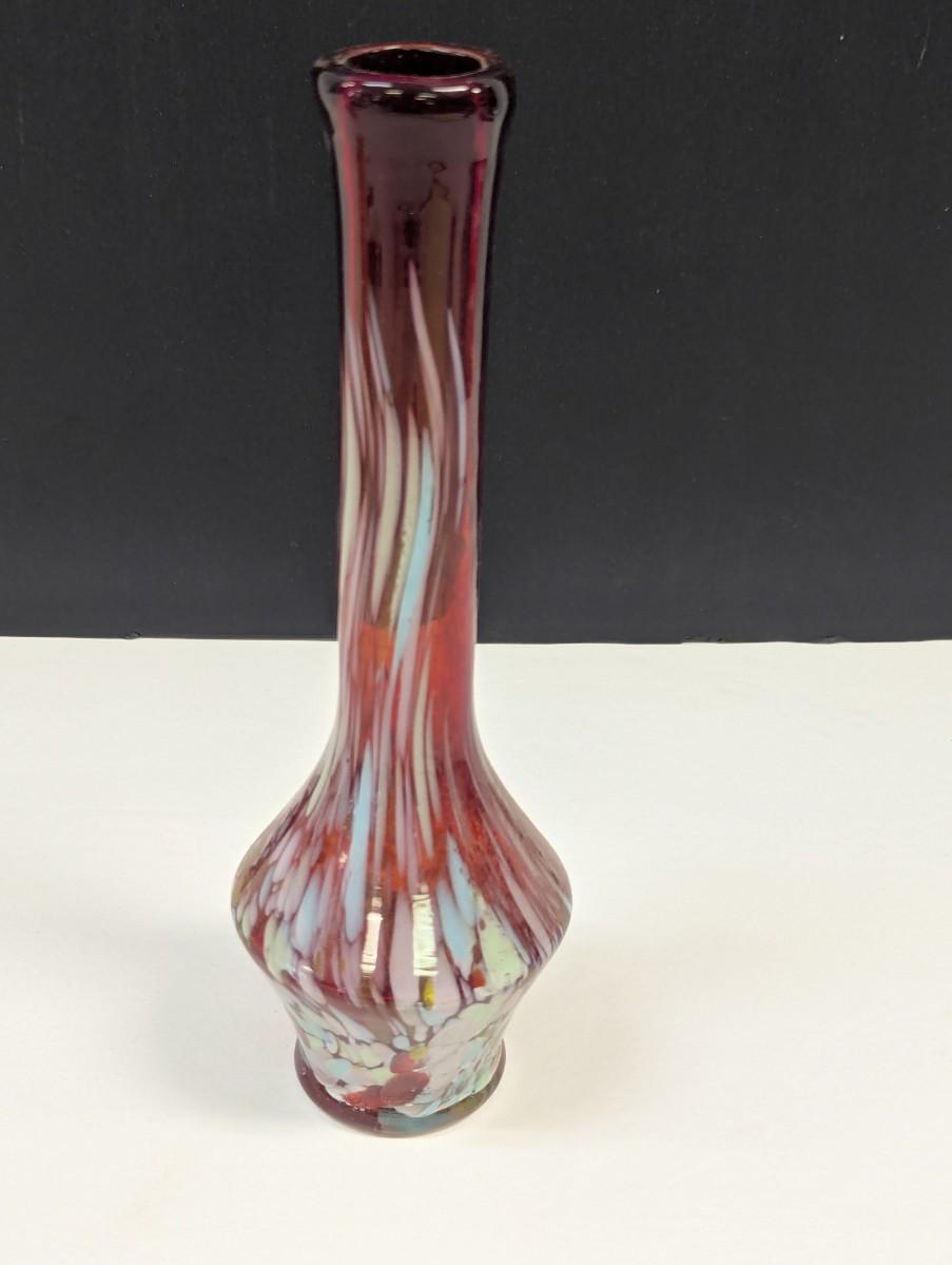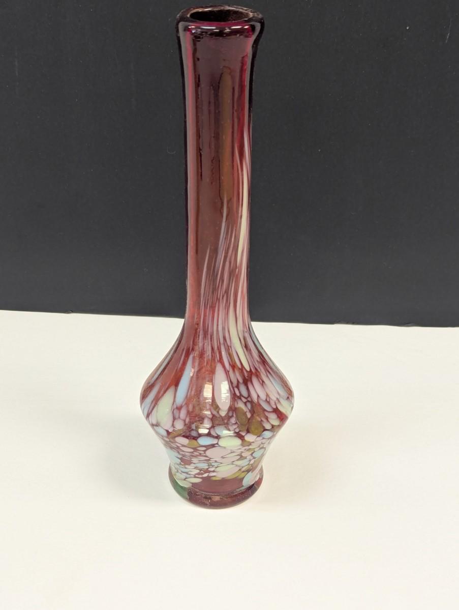 Vintage Kreiss Glass Vase Yellow With Controlled Swirl Hand Blown Art Glass Made Japan