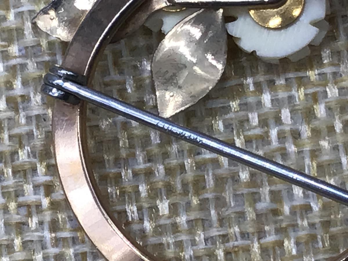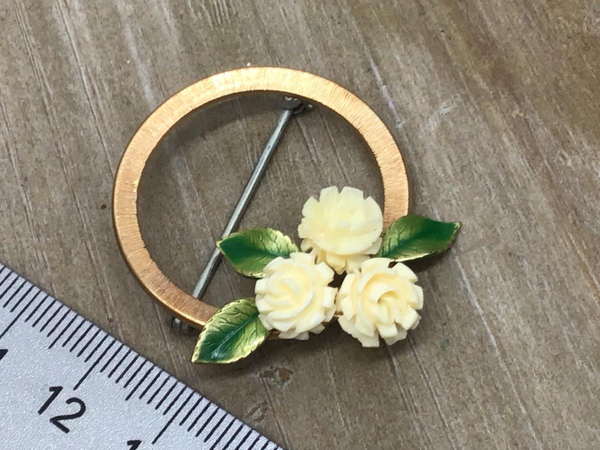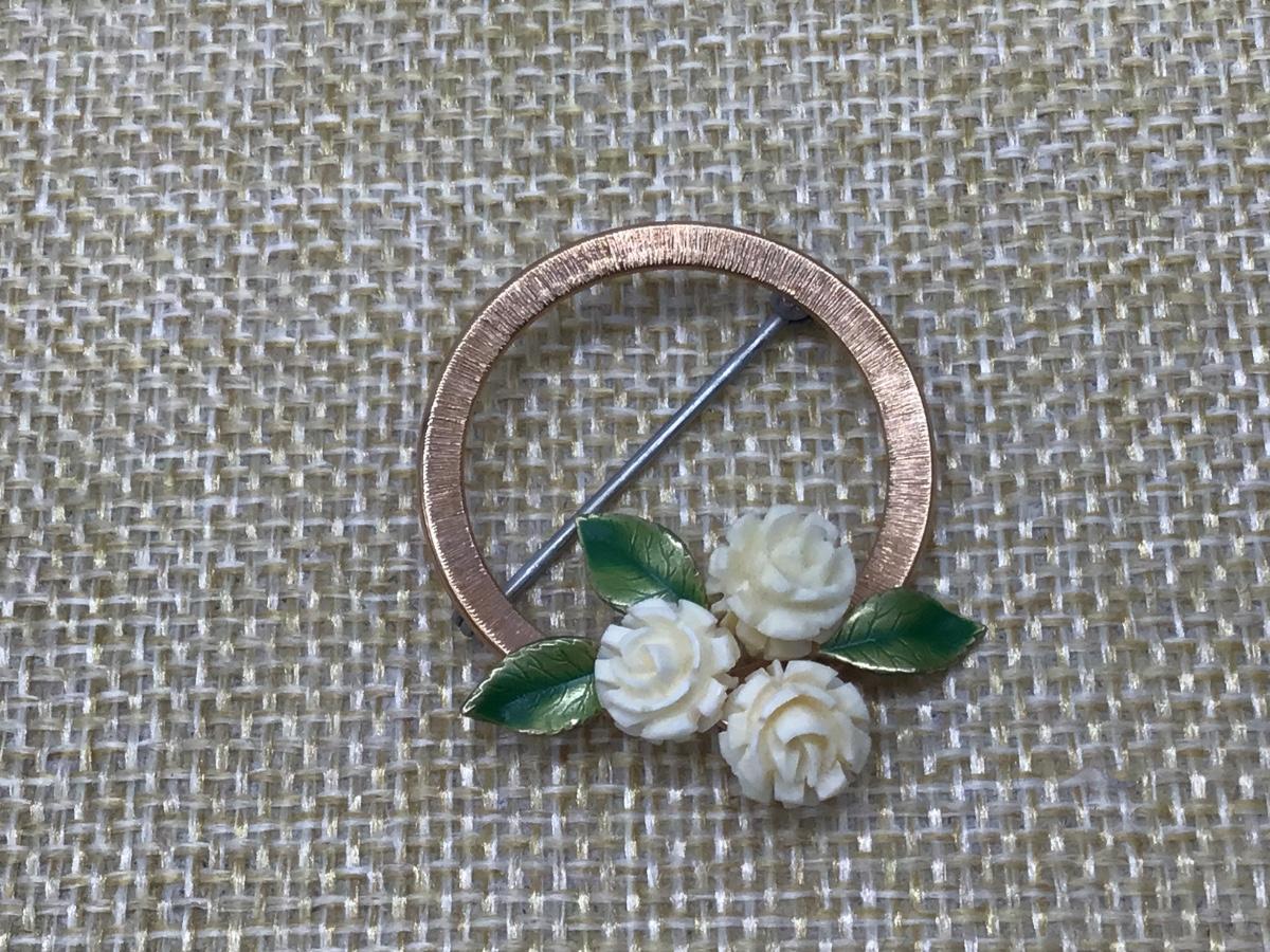 Vtg Krementz Brooch Petite Lucite Flower Wreath Gold Tone Metal