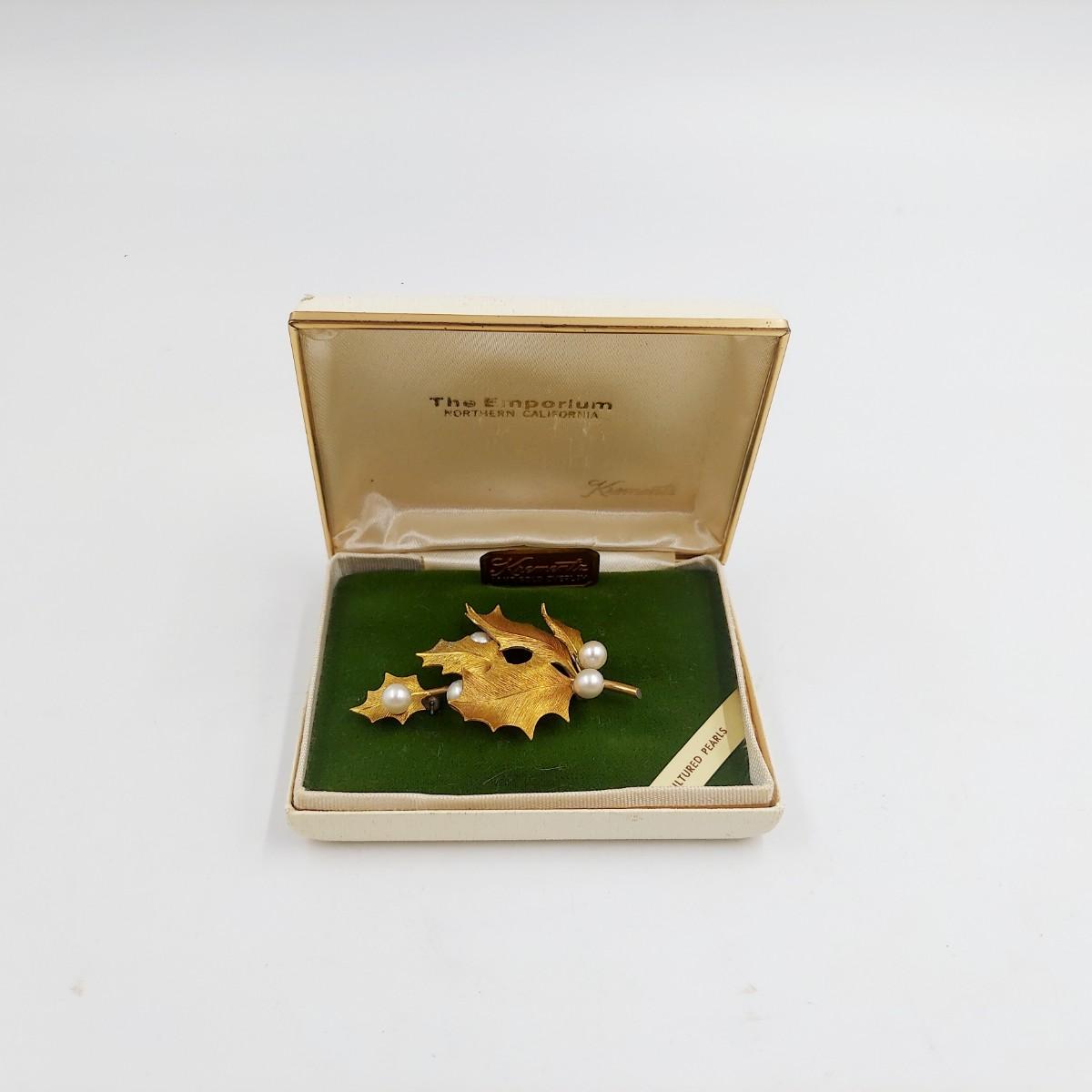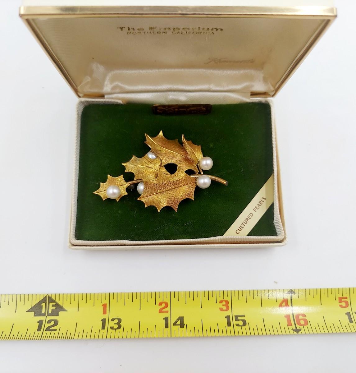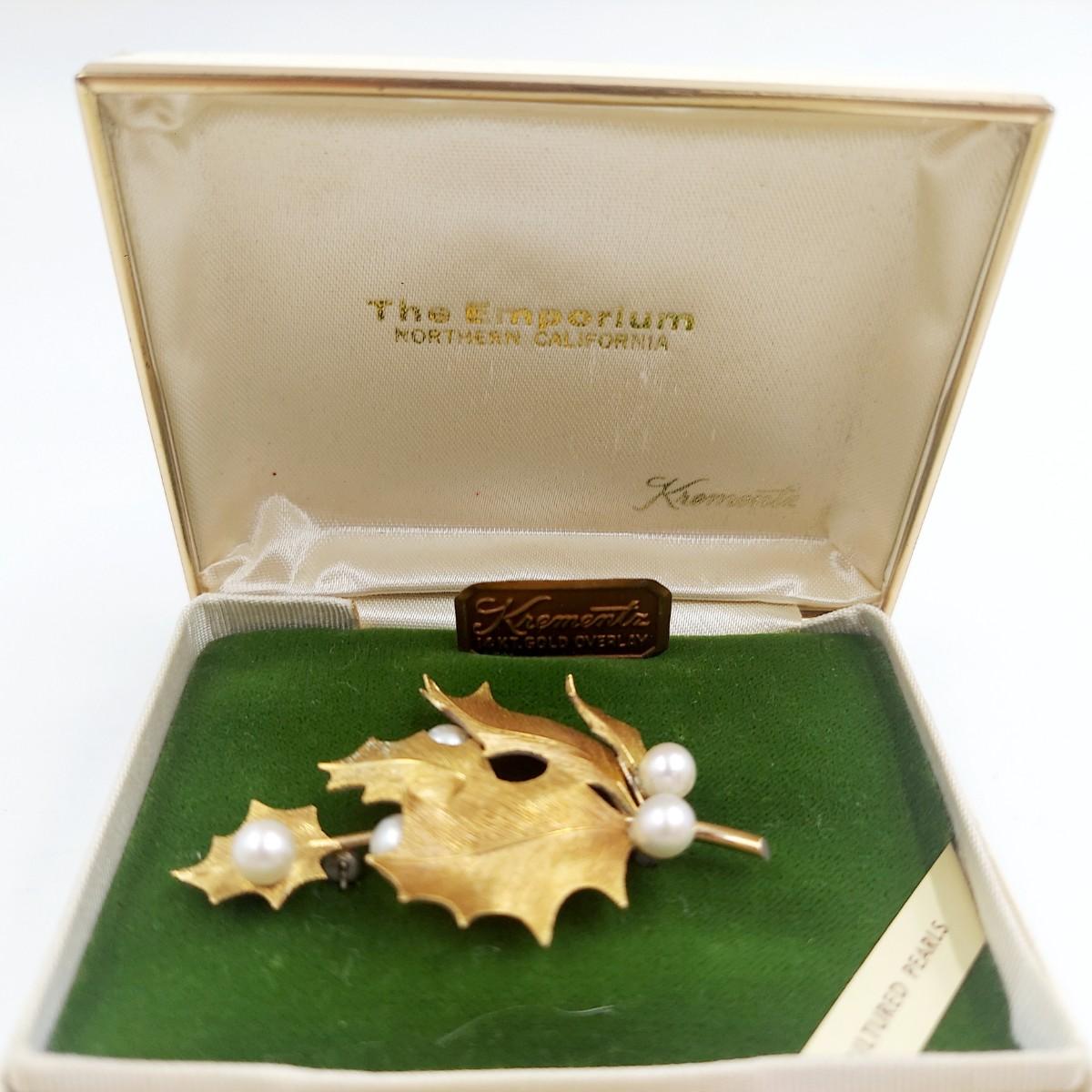 VINTAGE KREMENTZ CULTURED PEARL GOLD TONED BROOCH