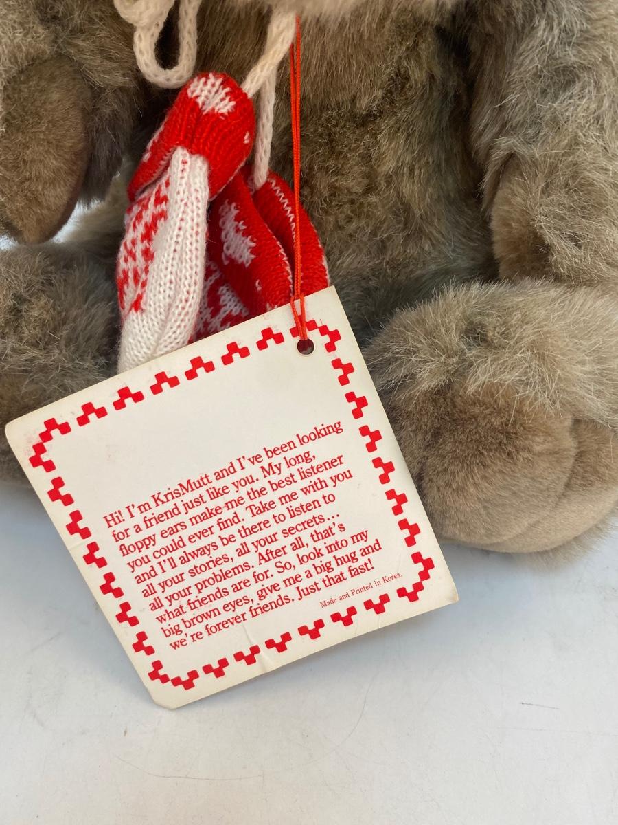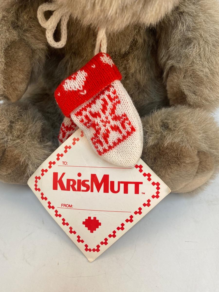 Vintage KrisMutt Stuffed Plush Dog Christmas Holiday Pup from Target. In good condition, may be dusty from storage. Has original hang hag still attached.
