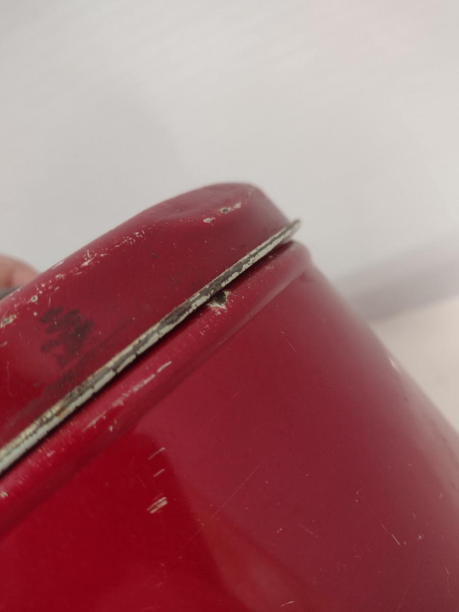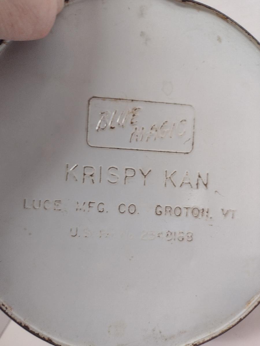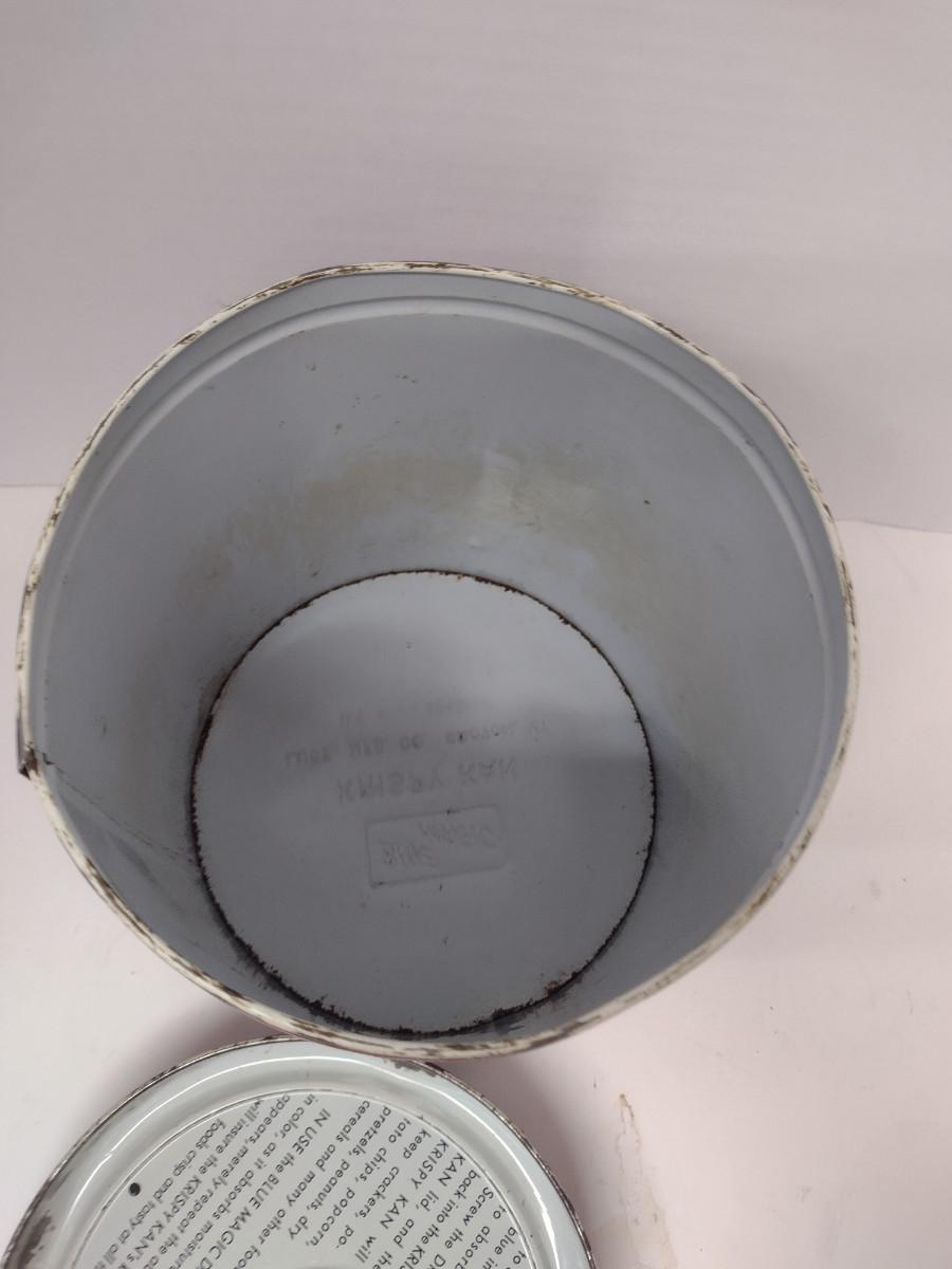 Vintage Krispy Kan Storage Tin. In heavily used condition- some denting and missing paint. Please see all pictures for condition.