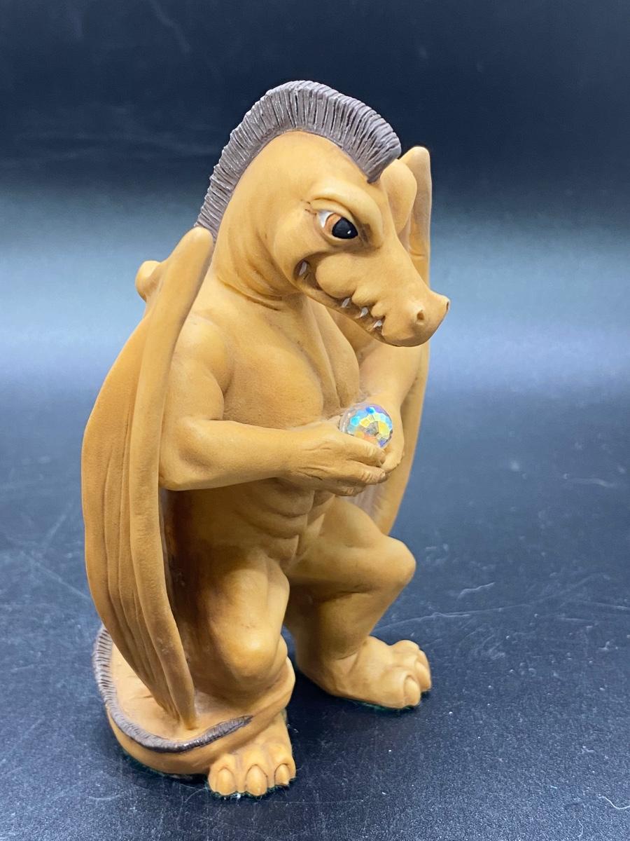 Vintage Krystonia Mythical Creature Holding Crystal Orb Dragon Figurine Groosh #3602