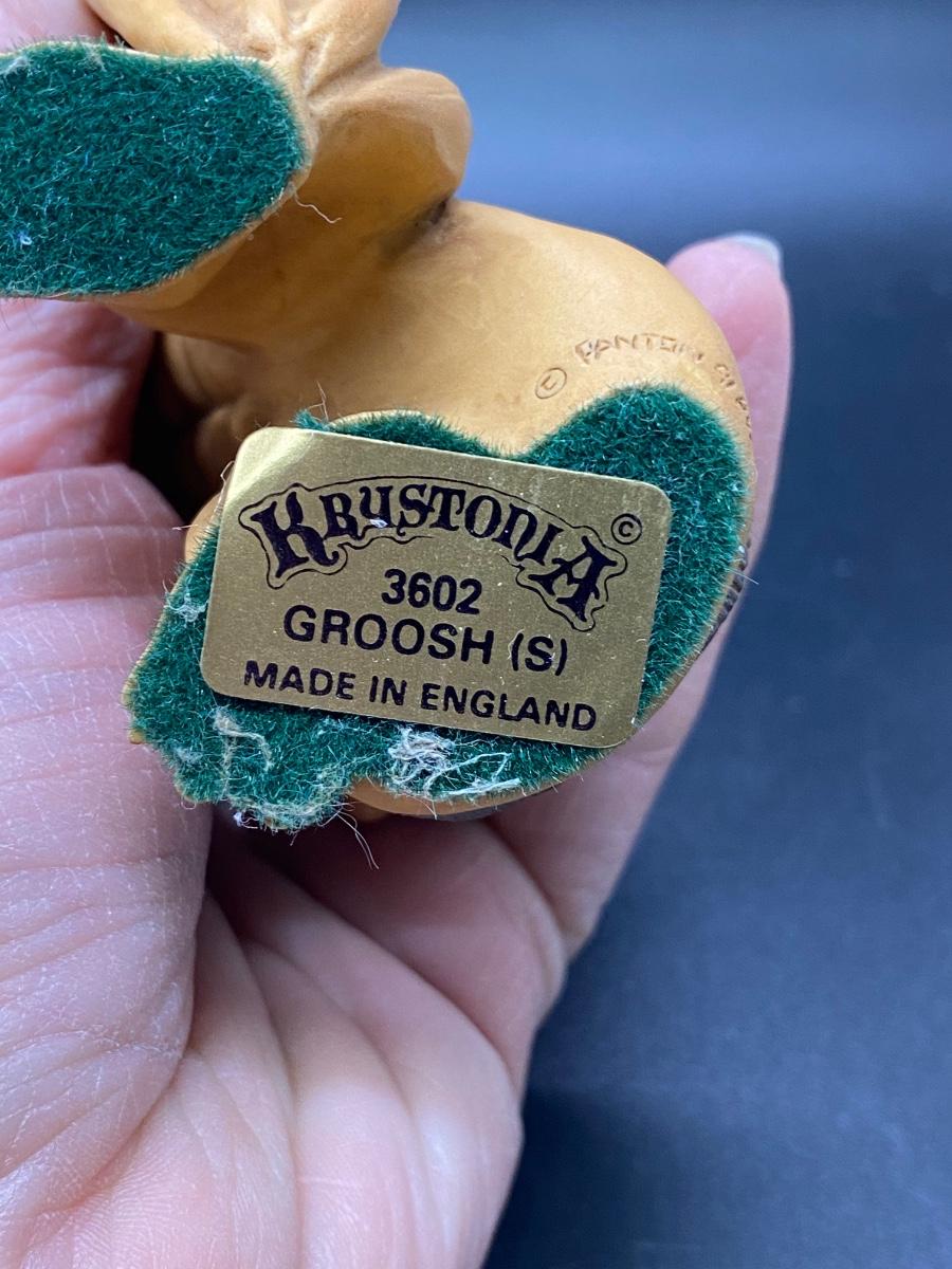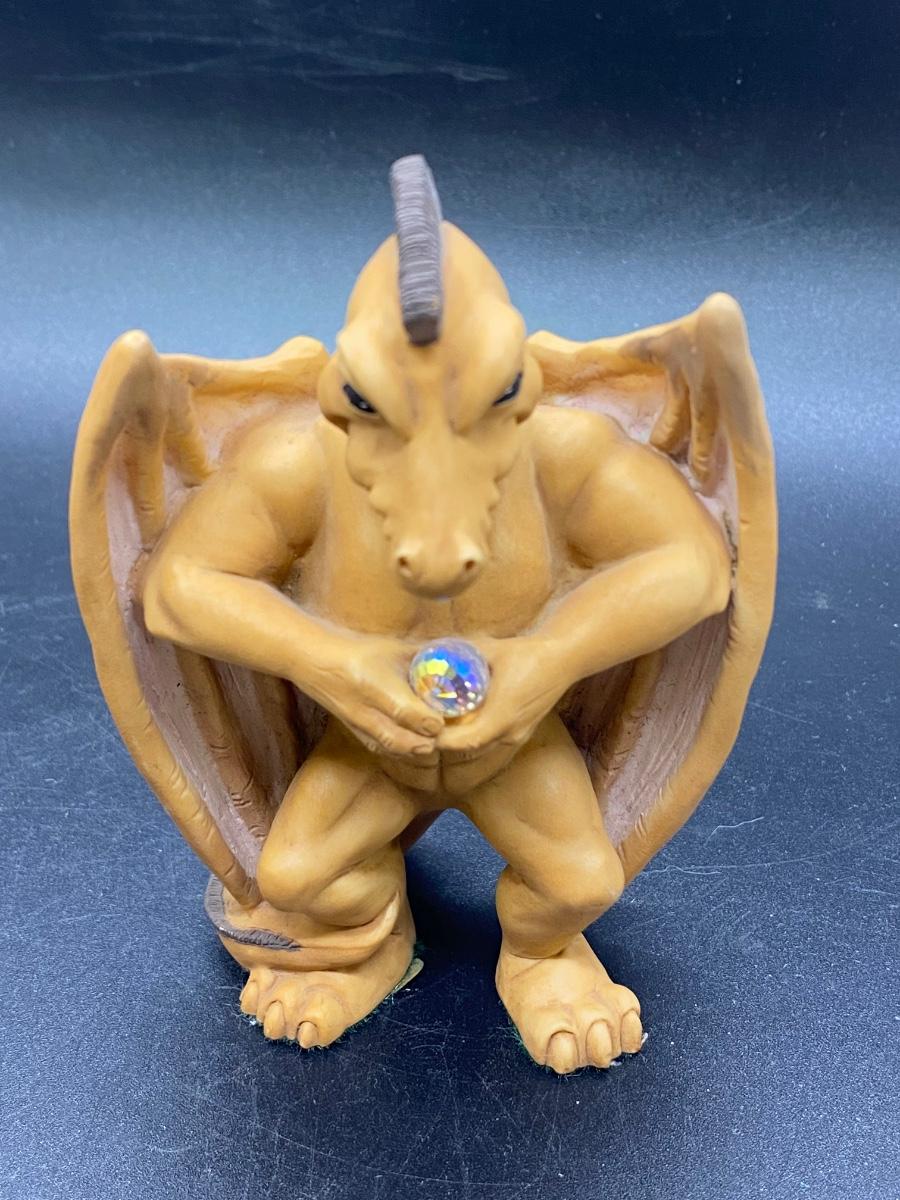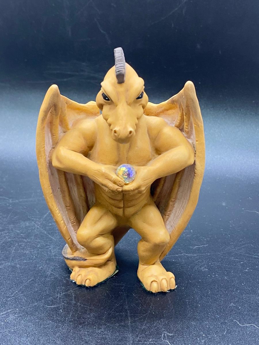 Vintage Krystonia mythical creature figurine. Groosh the dragon holding a crystal orb. #3602. Has original sticker on the bottom.