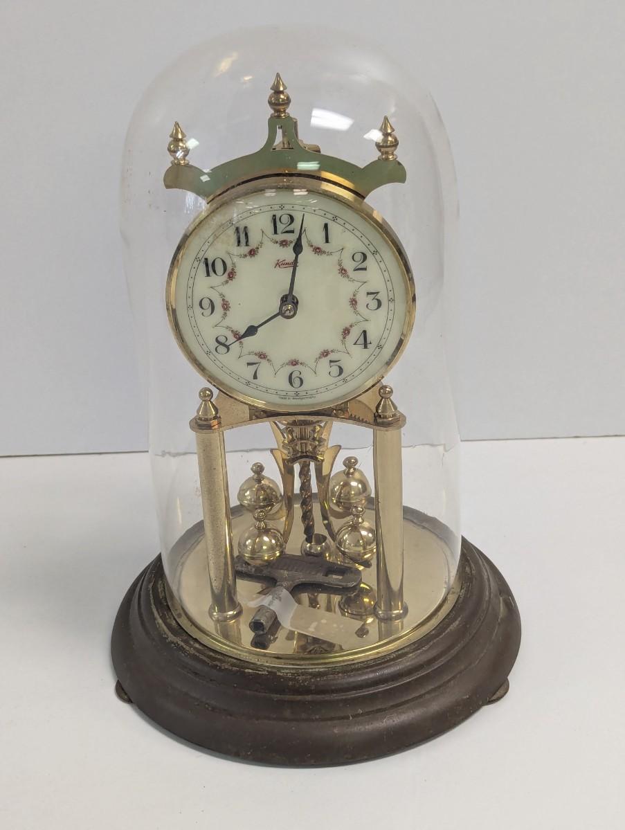 Vintage Kundo Clock Made In West Germany Glass Dome With Metal Base