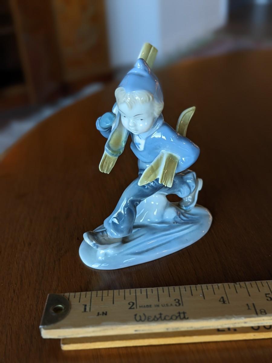 VINTAGE KUNST ILMENAU GDR CHILD SKIER PORCELAIN FIGURINE