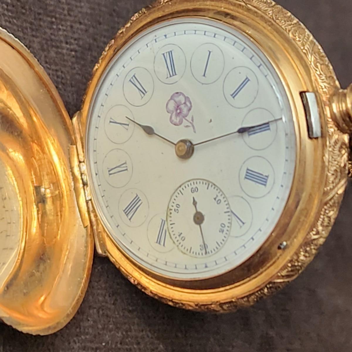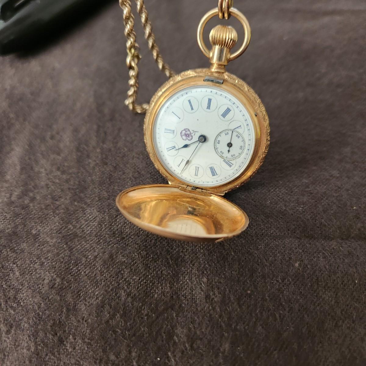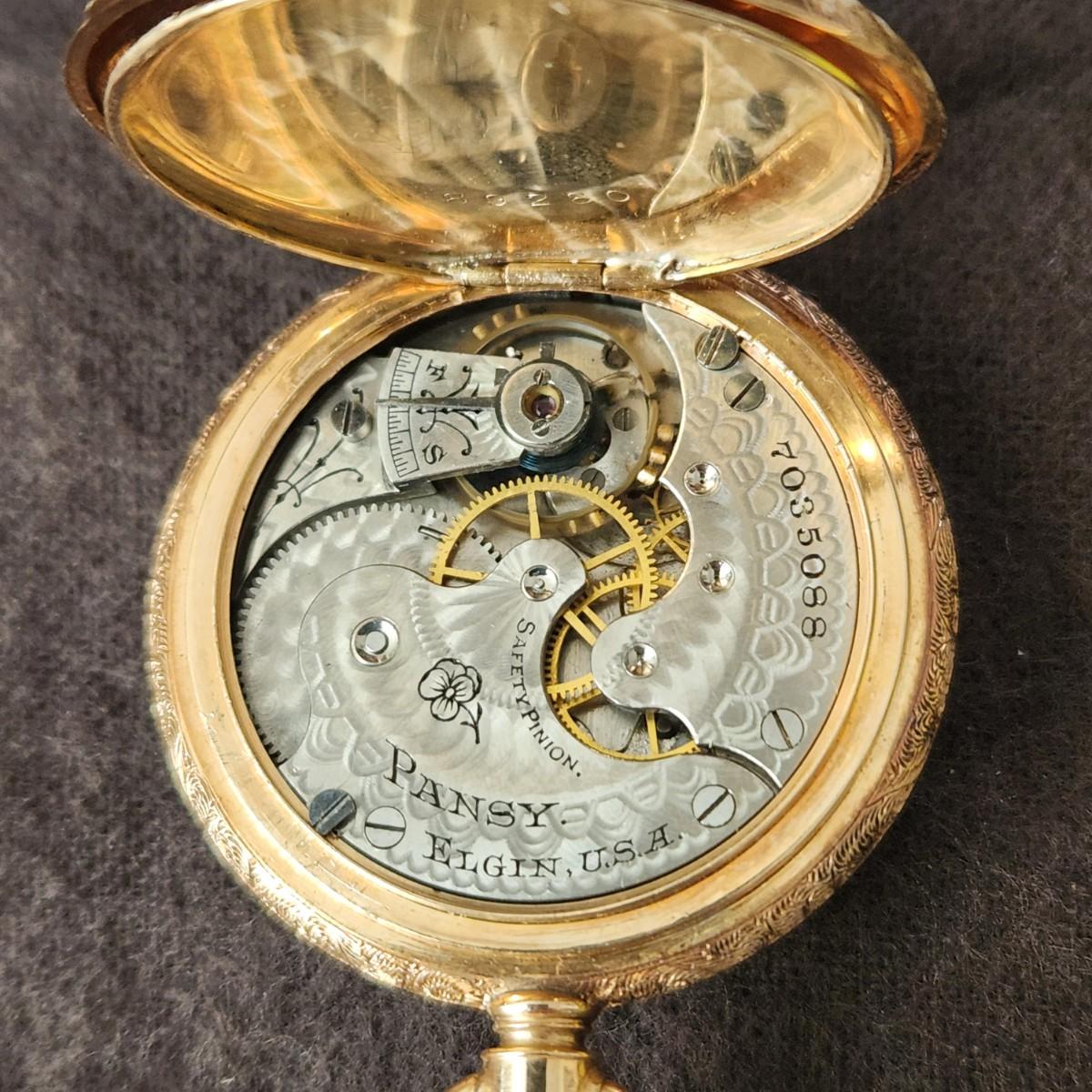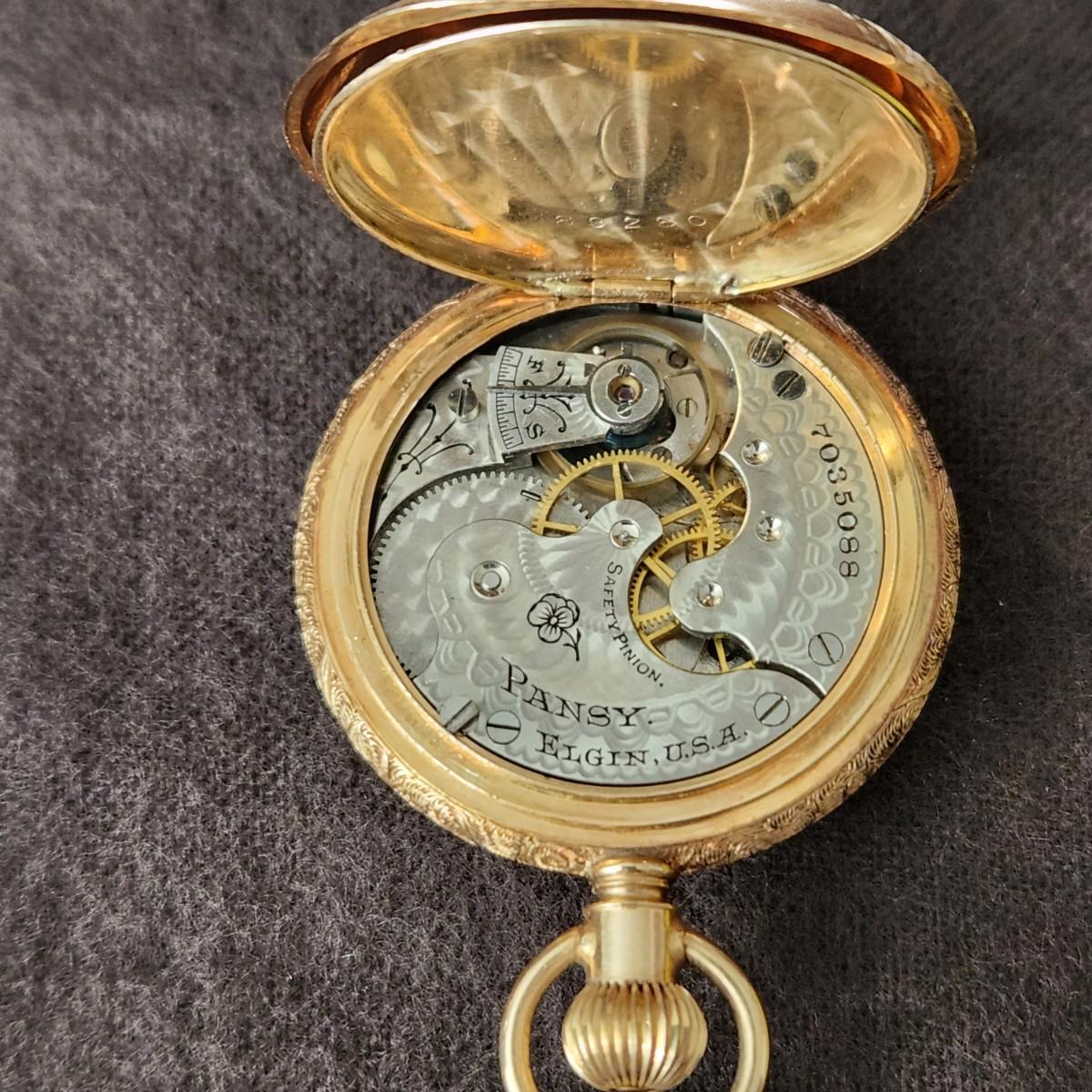 Vintage L & Co. Elgin Pansy Ladies Pocket Watch 24" Chain