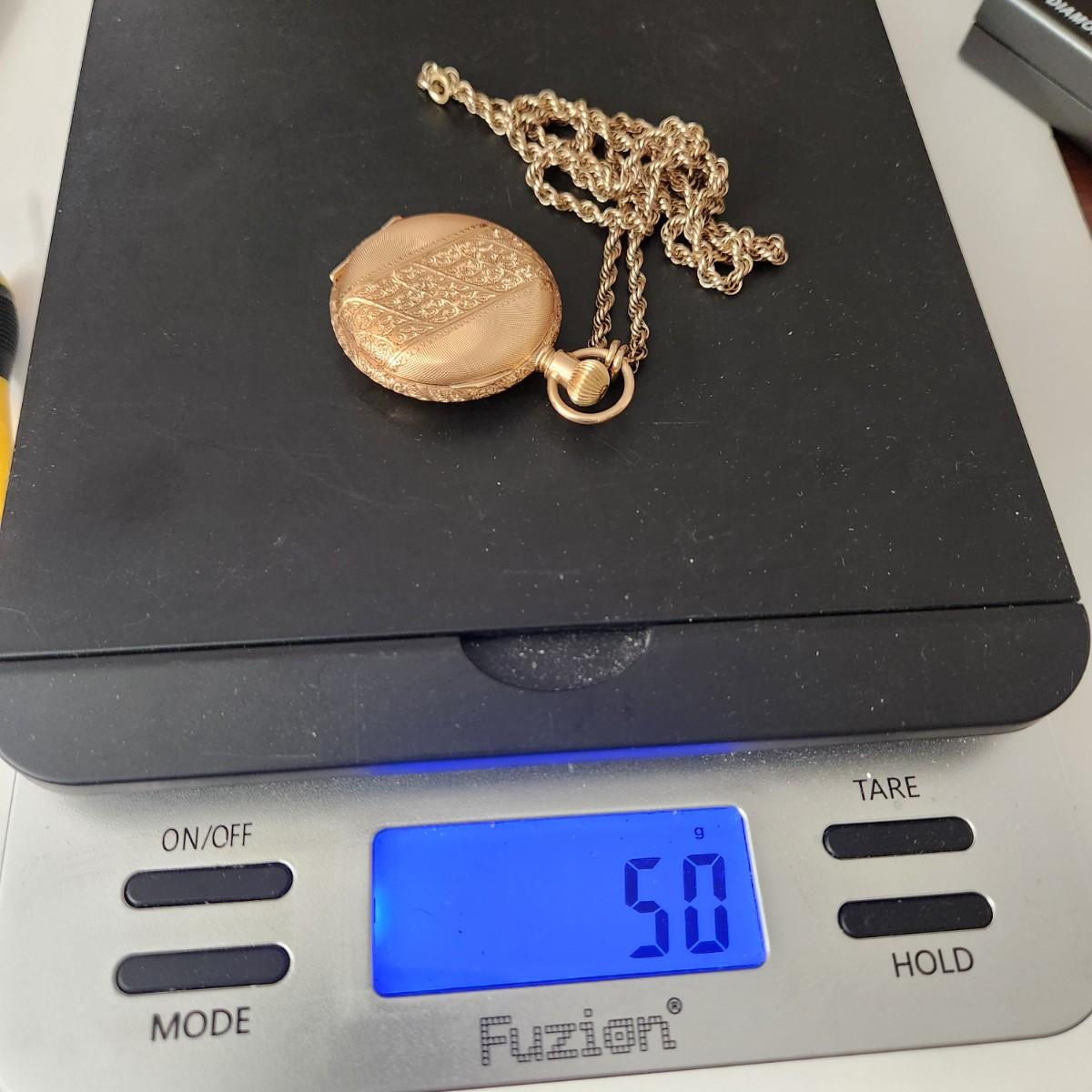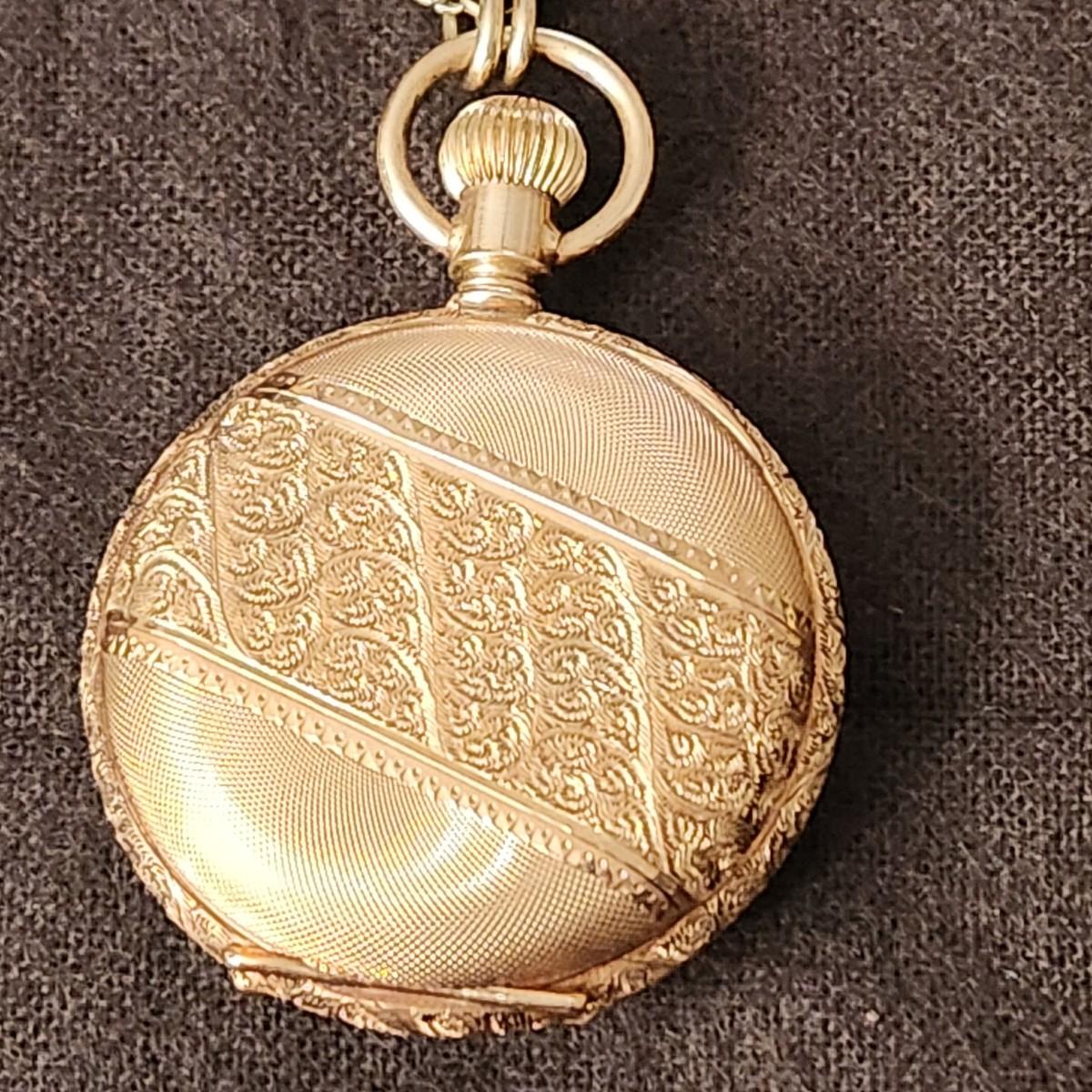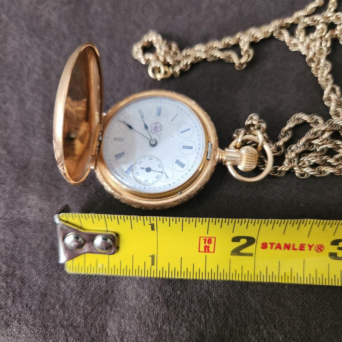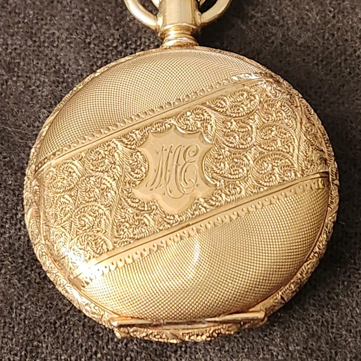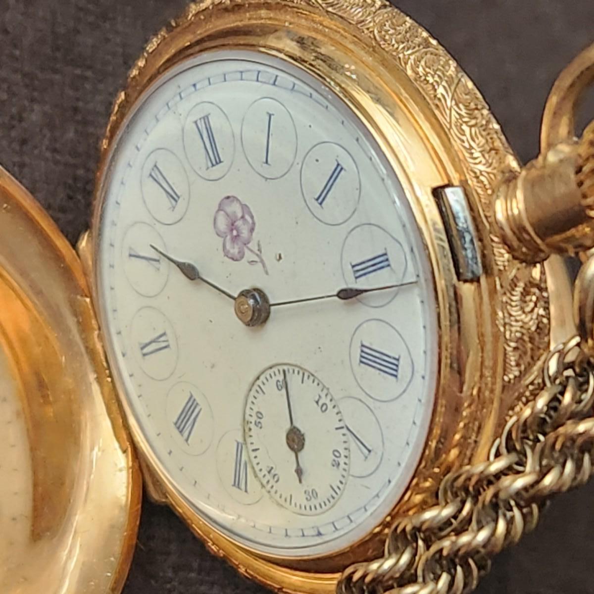 Vintage L & Co. Elgin Pansy Ladies Pocket Watch 24" Chain