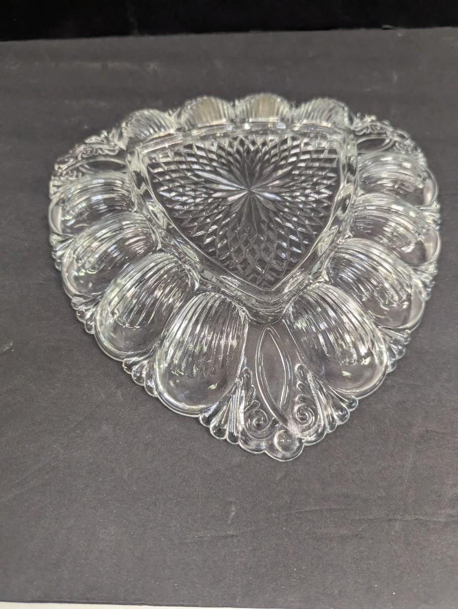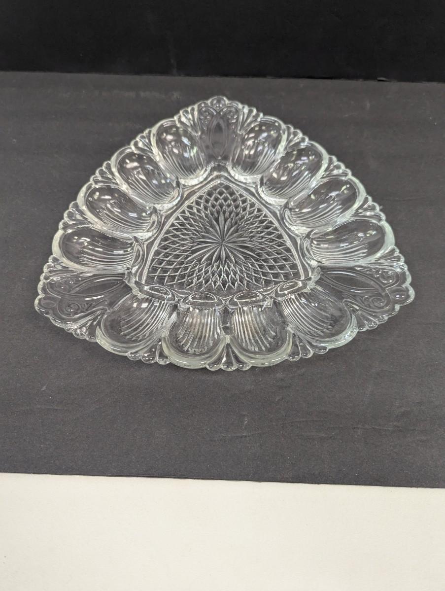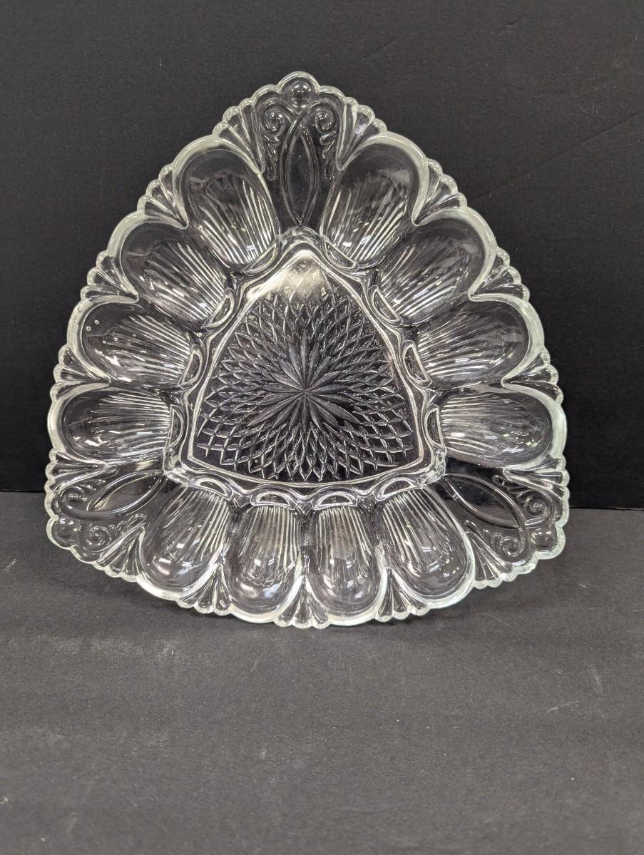 Vintage L E Glass Company Triangle Deviled Egg Serving Platter Plate Tray