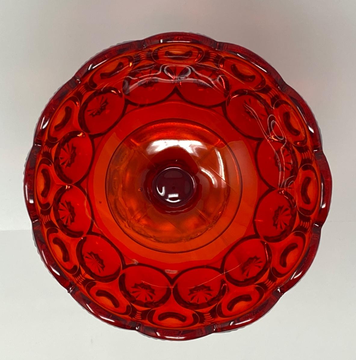 Vintage L. E. Smith Amberina Glass Moon and Stars Covered Compote Dish