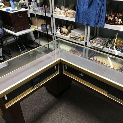 Vintage L Shaped Locking Jewelry Display Cabinet