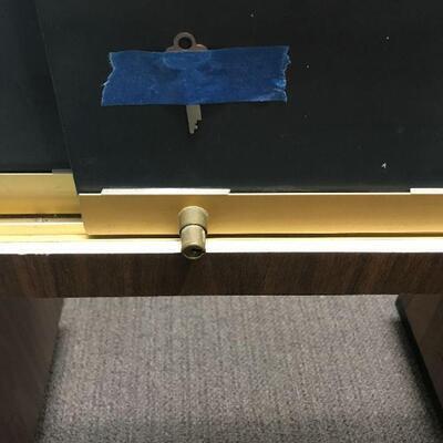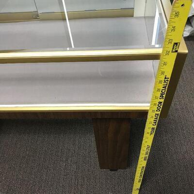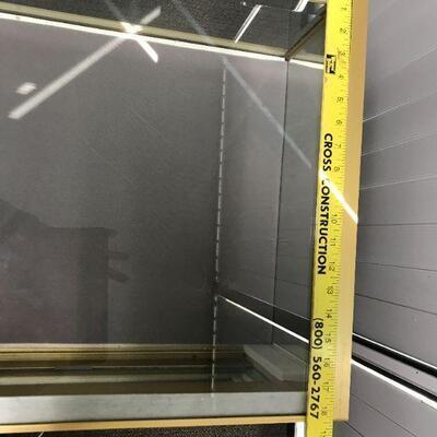 Very good condition. We've had it for about 5 years. We bought it from a jeweler who was retiring. We don't have a need for it anymore. 32”tall, short part is 50”, long part is 70” long. Interior felt is new and easy to replace