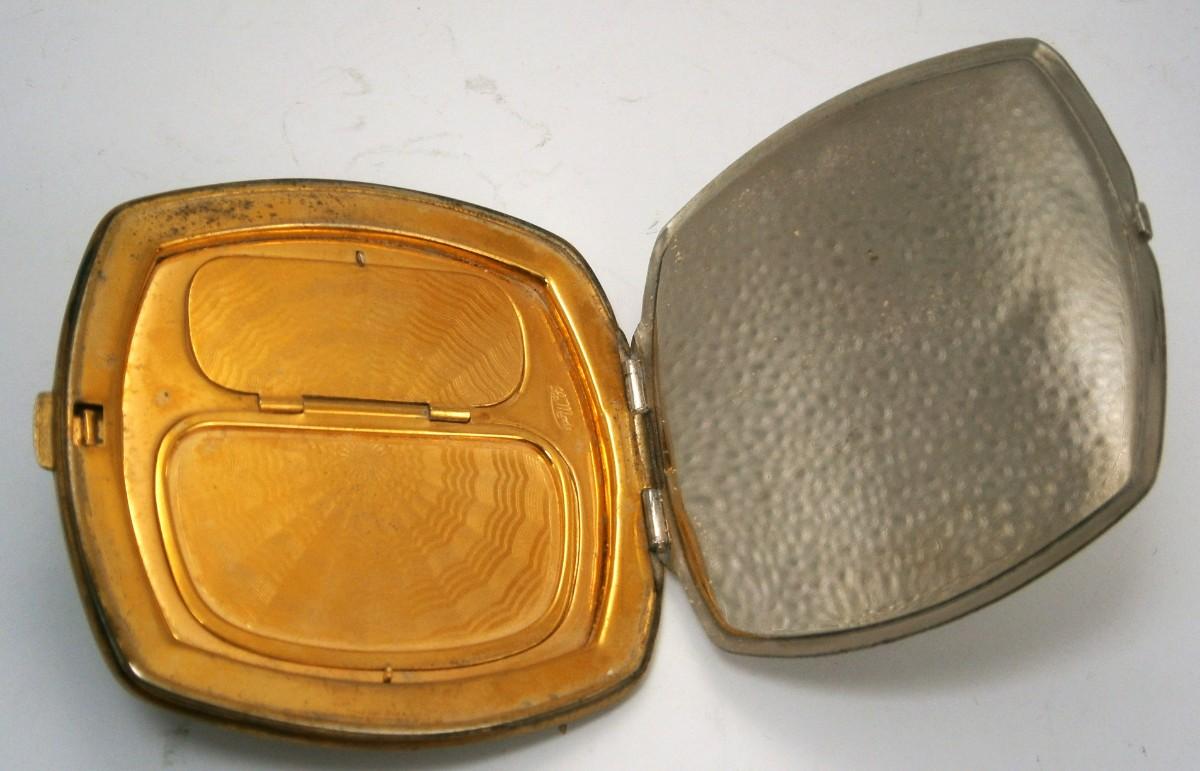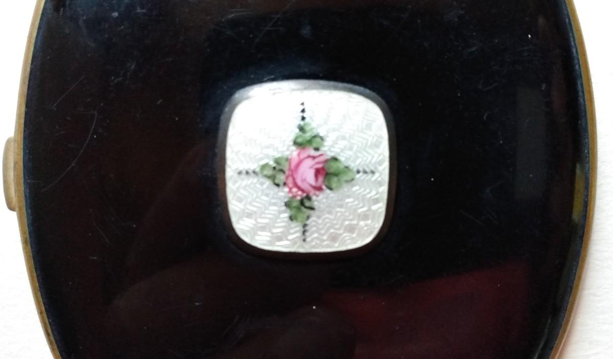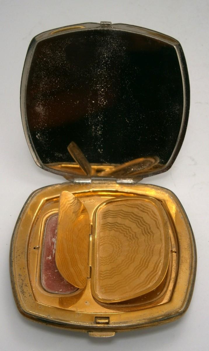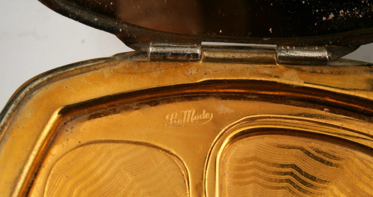 Vintage "La Mode" Compact, 2 1/2 x 2 3/8 in., enamel over gold tone metal