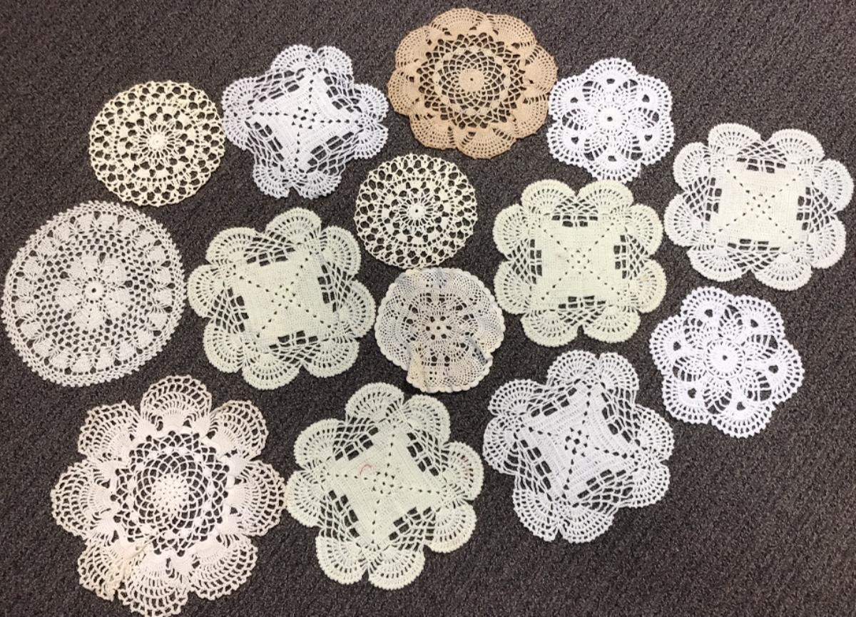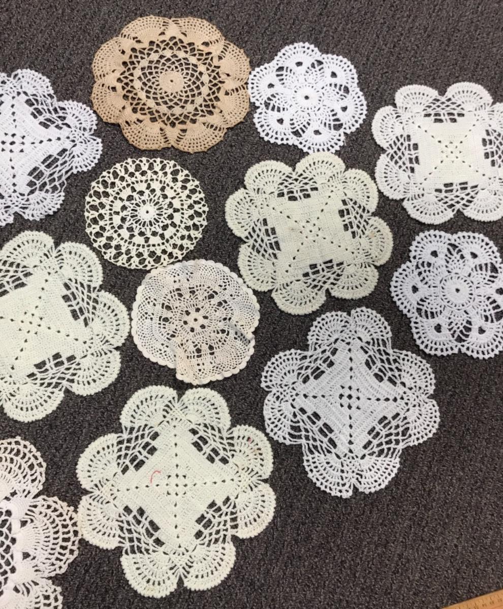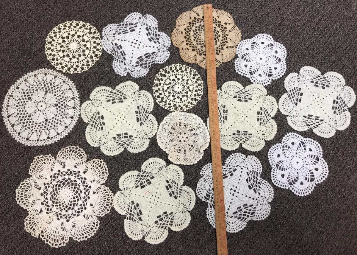 Vintage lace, 6” to 8” doilies hand-made, lot of 14