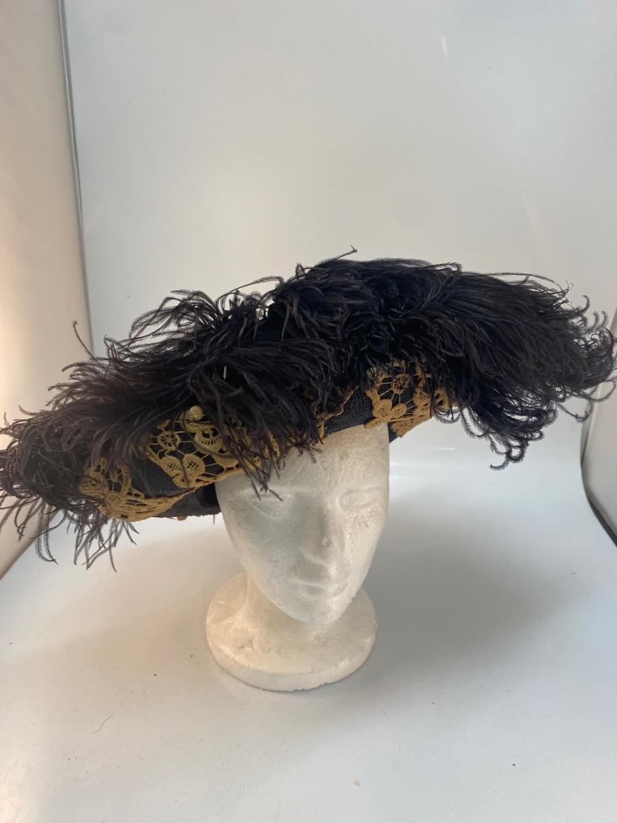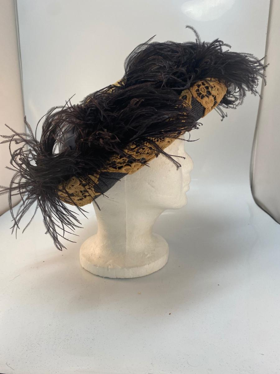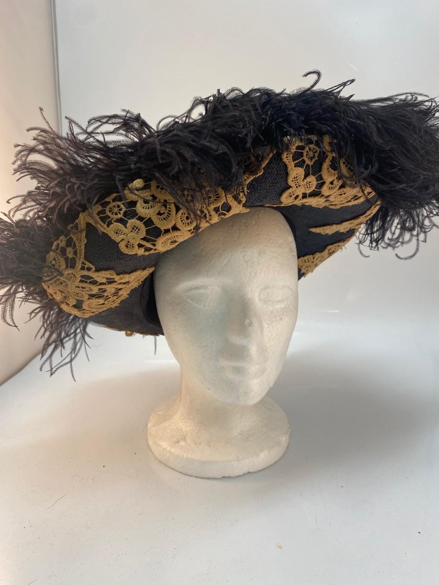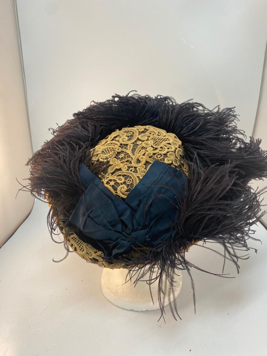 Vintage Lace & Ostrich Feather Covered Woven Straw Hat