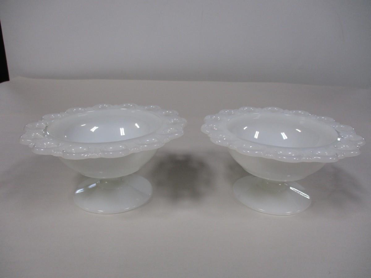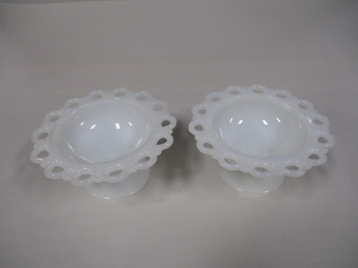 5 3/4" Vintage Lacy Scalloped Edge Milk Glass Pedestal Candy Nut Dish
