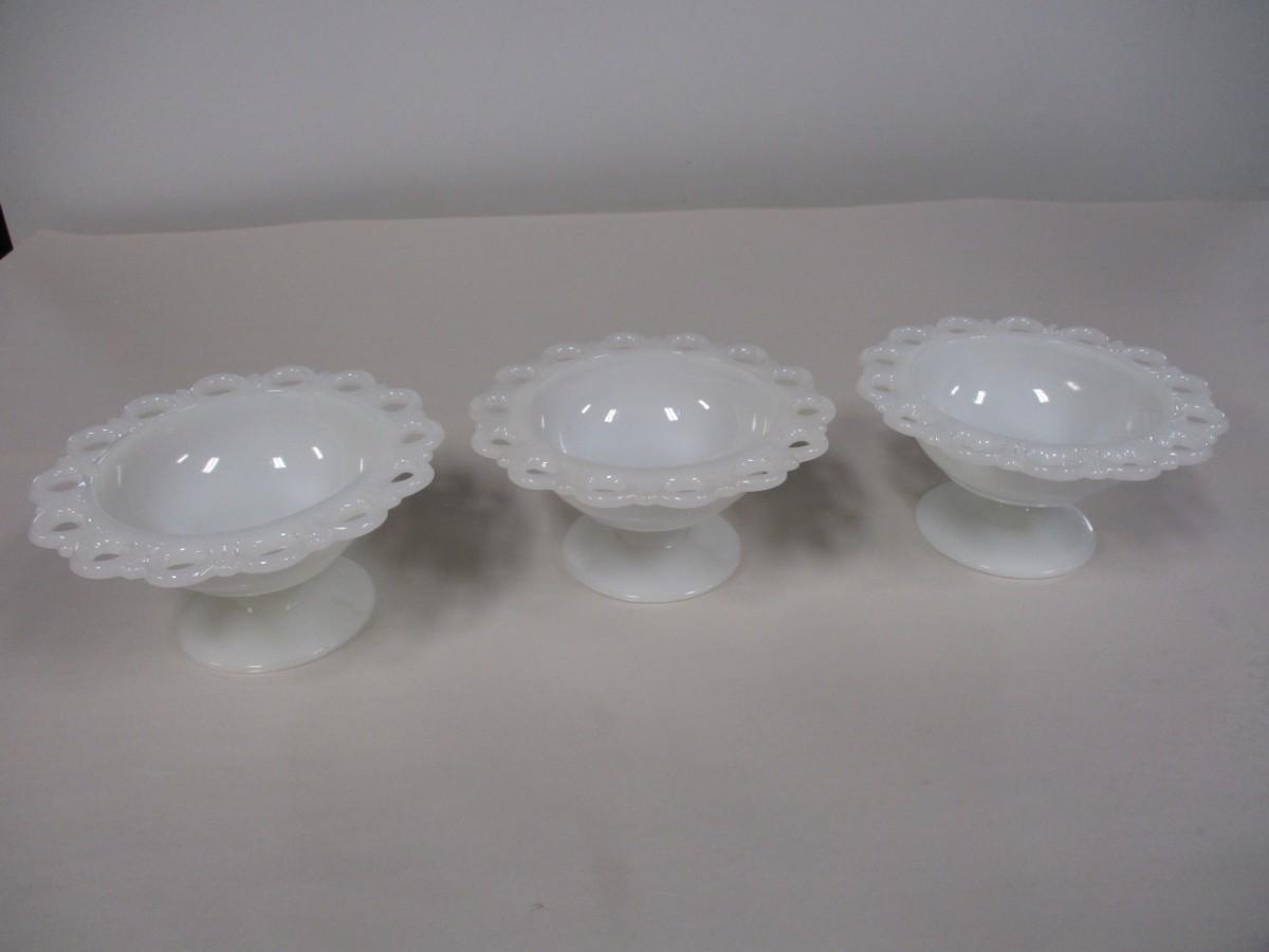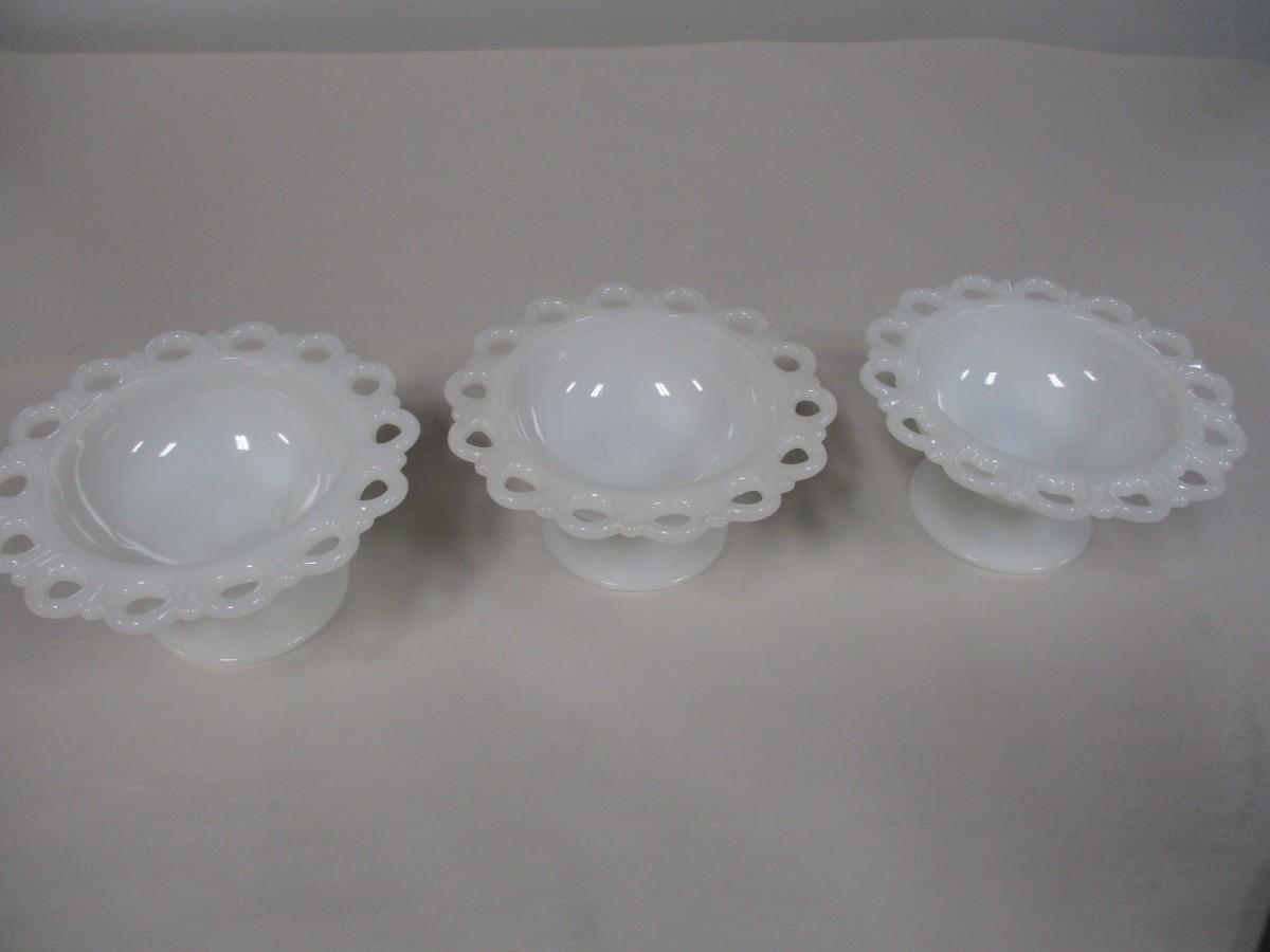 5 3/4" Vintage Lacy Scalloped Edge Milk Glass Pedestal Candy Nut Dish