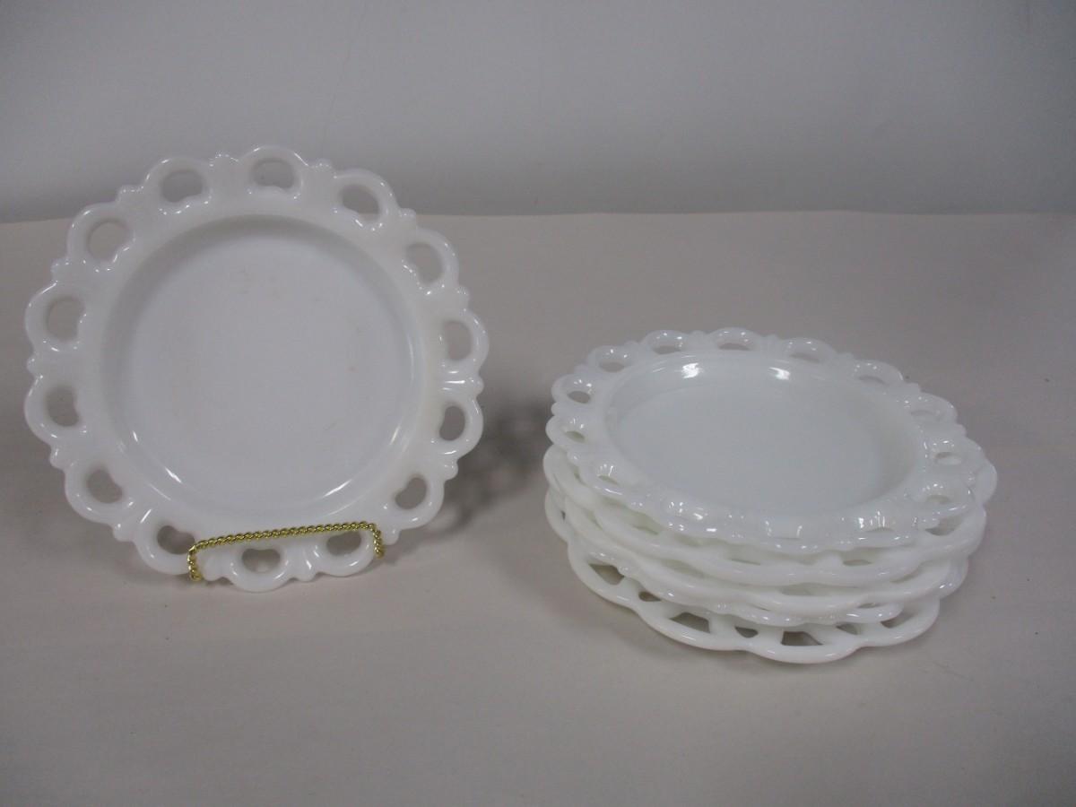 Vintage Lacy Scalloped Edge Milk Glass Plates
