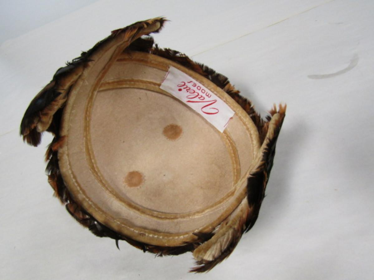 Vintage Ladies Feathered Hat by Valerie Modes- Beautiful Colors. Made with pheasant feathers, lovely and iridescent.