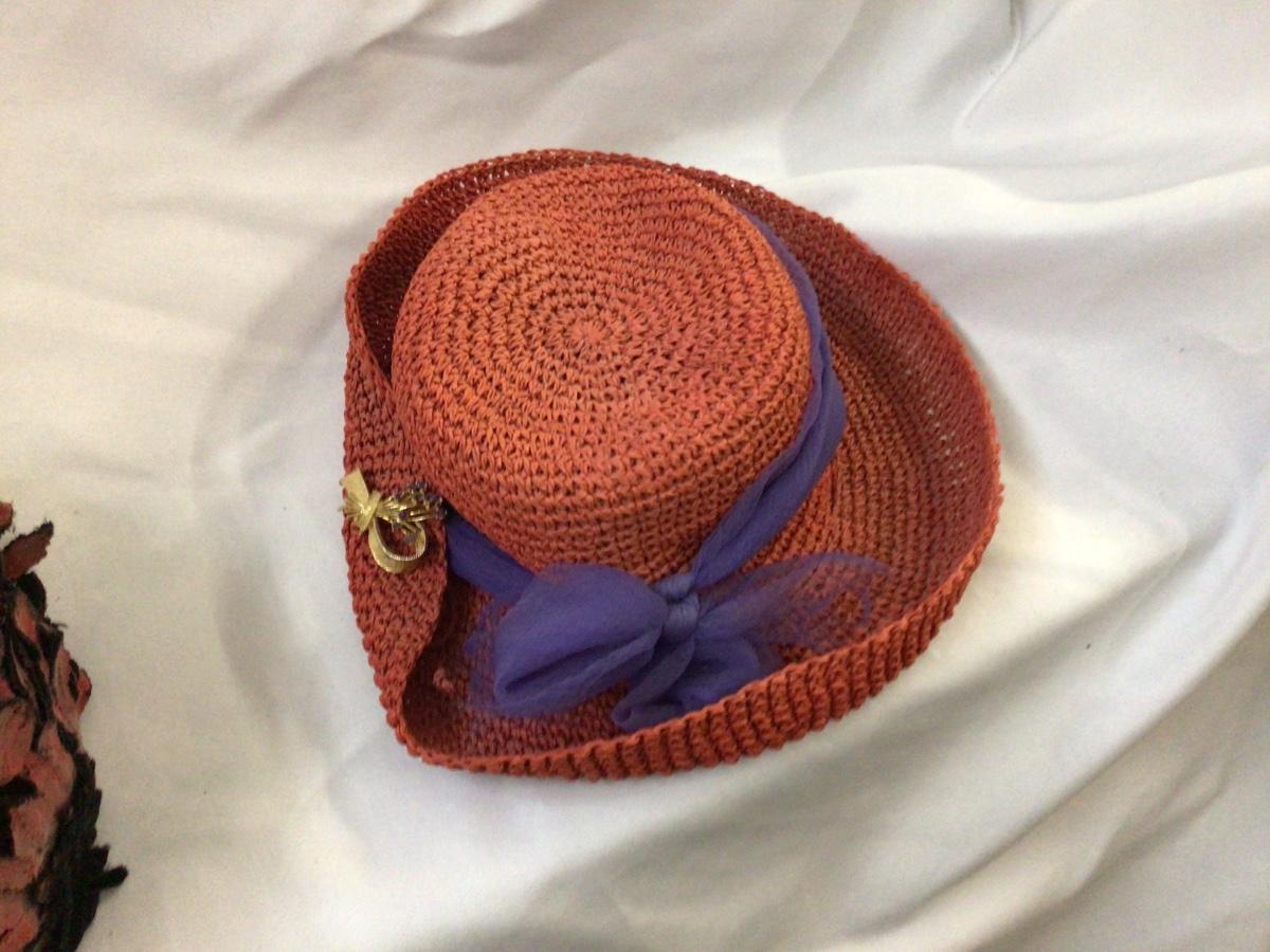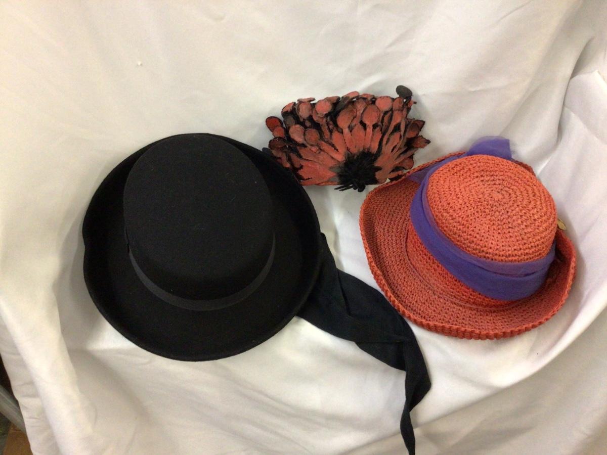 You get three vintage ladies hat. There is red and purple hat, feather hat, and black derby style hat with ear flaps.