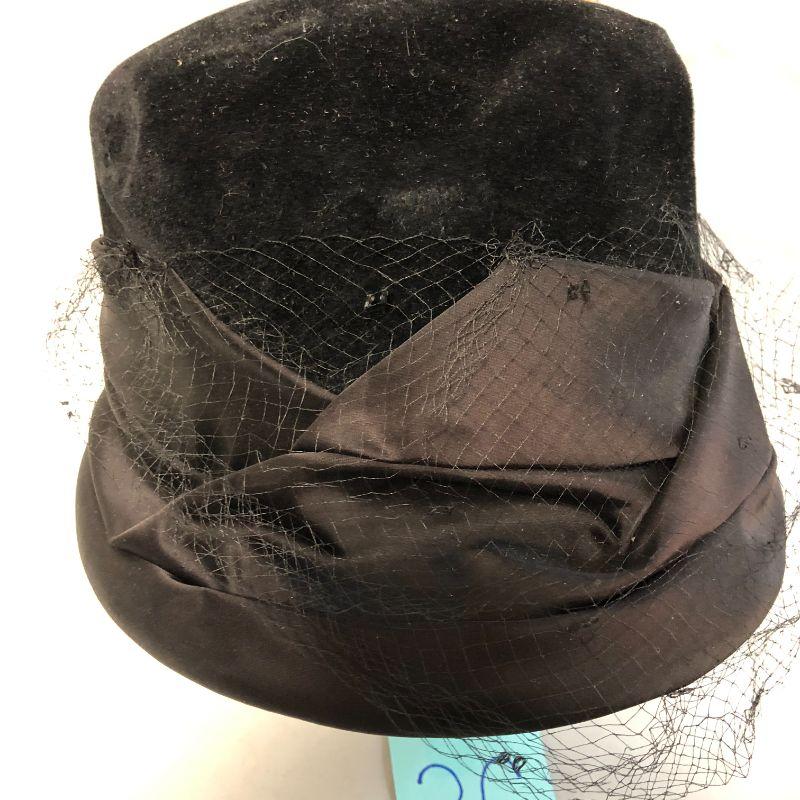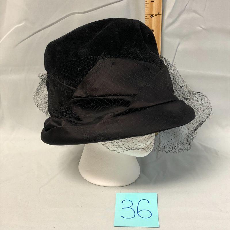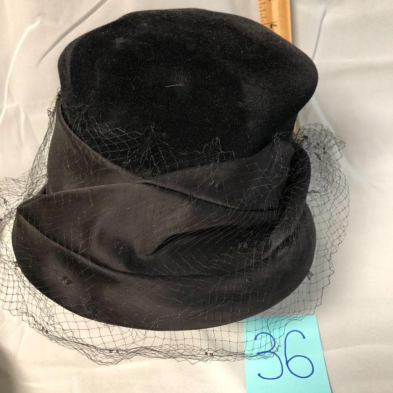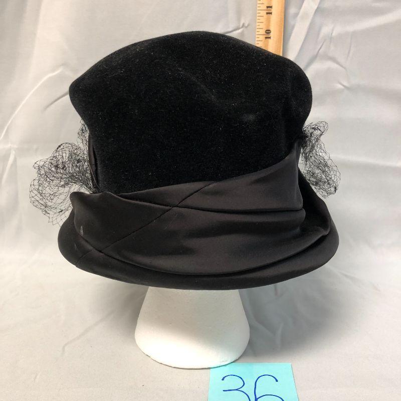 This black felt hat is in excellent condition including the netting. I found a hat pin when I was taking pictures and that is included with the hat. Head form not included.