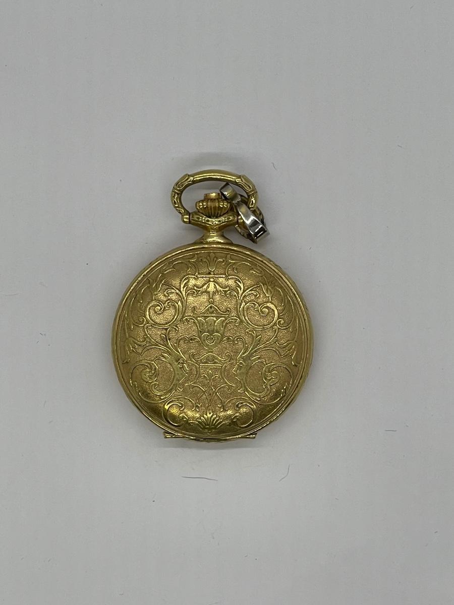 Vintage Ladies Rollie 17 Jewel Incabloc Pocket Watch 10K Gold Plate Works. In very good condition. Elegant design with an ornate stamped pattern.