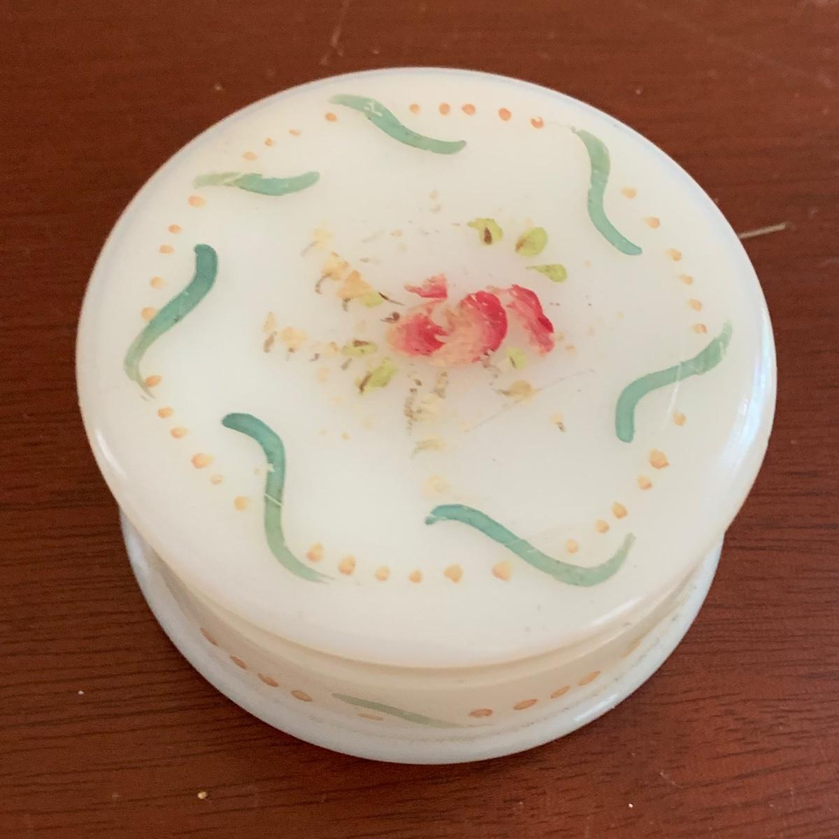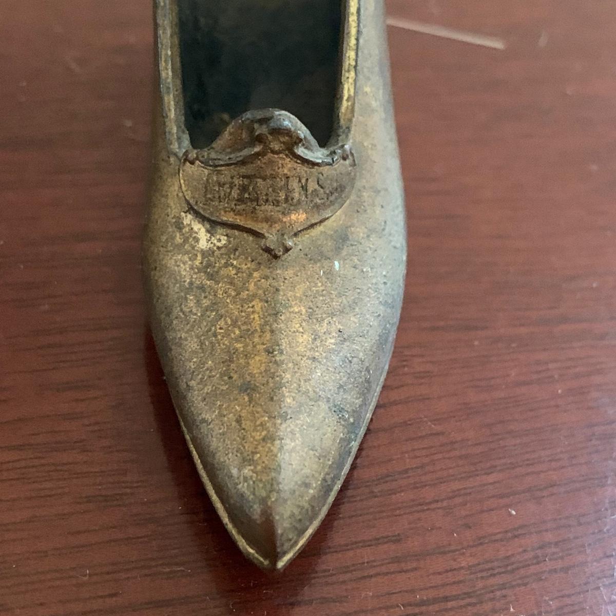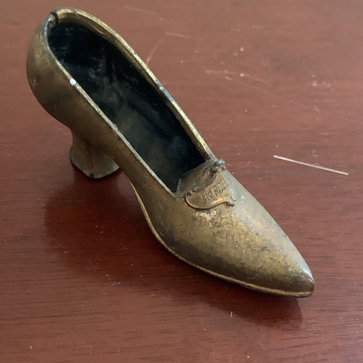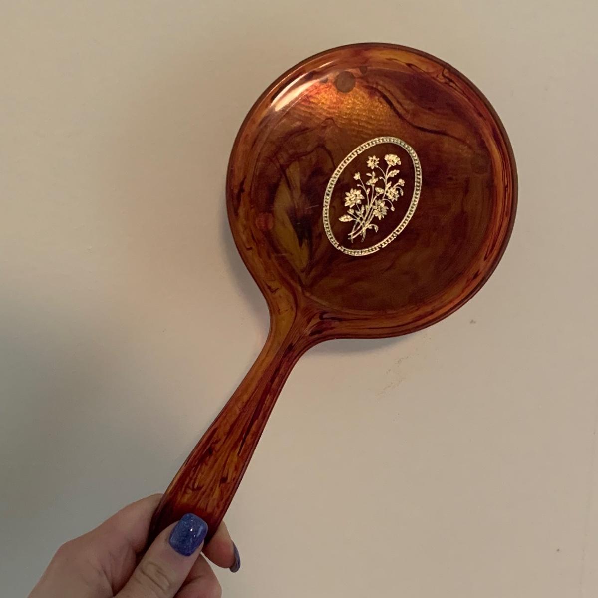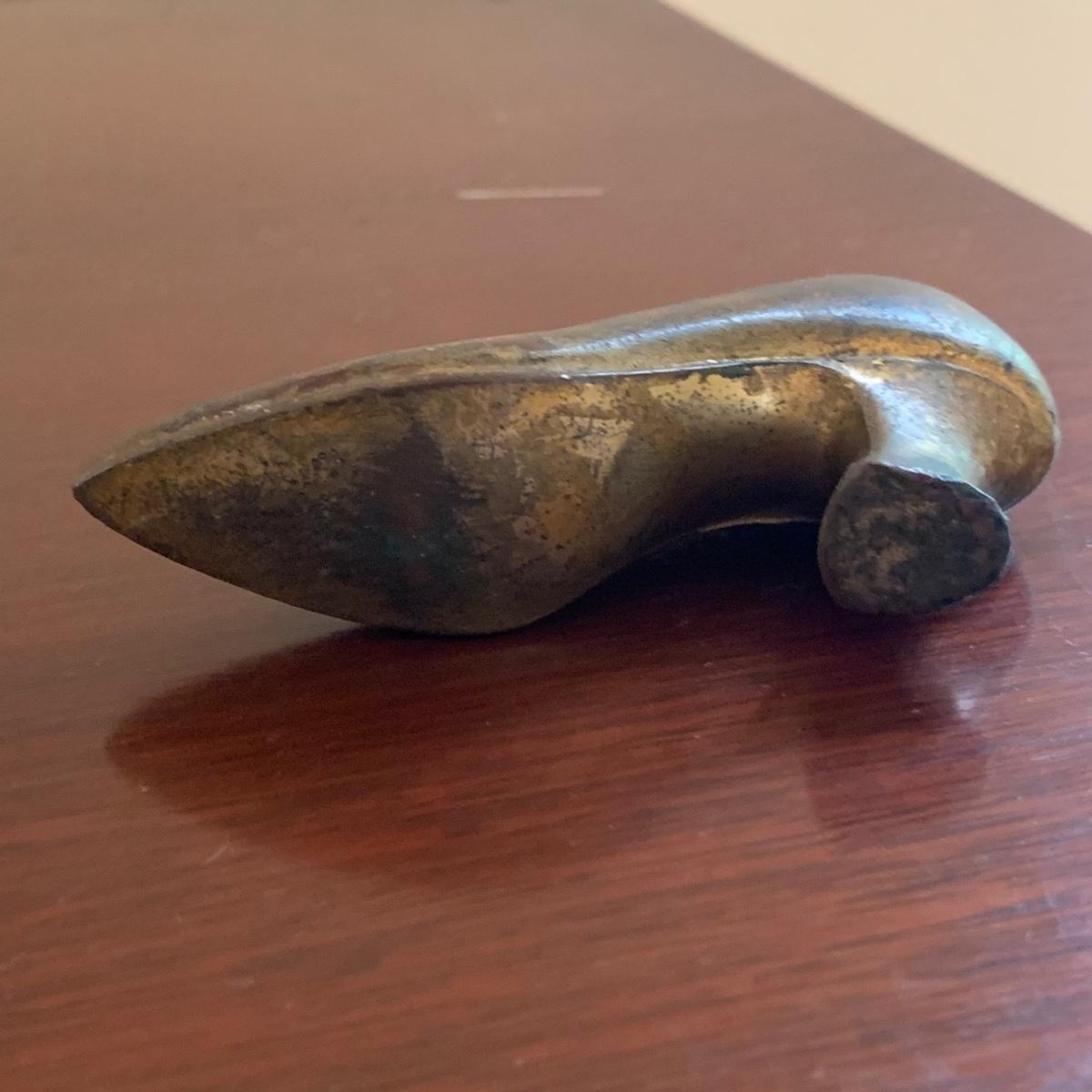 A collection of unique vintage ladies vanity items. Includes a bubble glass framed mirror-top tray, a ceramic lady with pearl jewelry, a little metal high heeled shoe, a round glass lidded container, a handheld mirror with a plastic handle, a metal hairbrush with soft bristles, a Swiss clock, and hair adornments. The tray measures 12” x 7”. Many items show wear, which adds to their vintage charm. Clock ticks when wound. Shipping available.