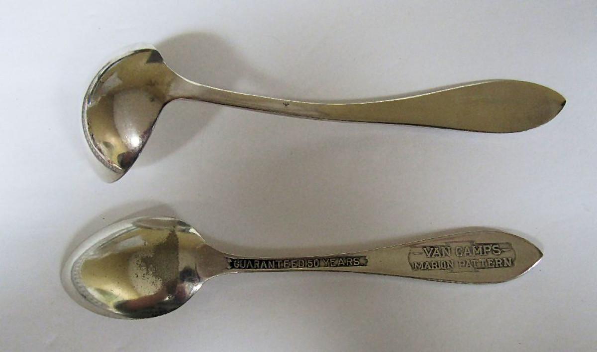 Vintage Ladle and Spoon, Matching, One Marked Van Camp's Marion Pattern, Guaranteed 50 Years