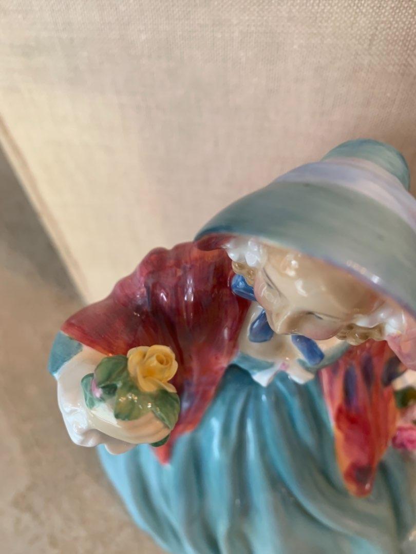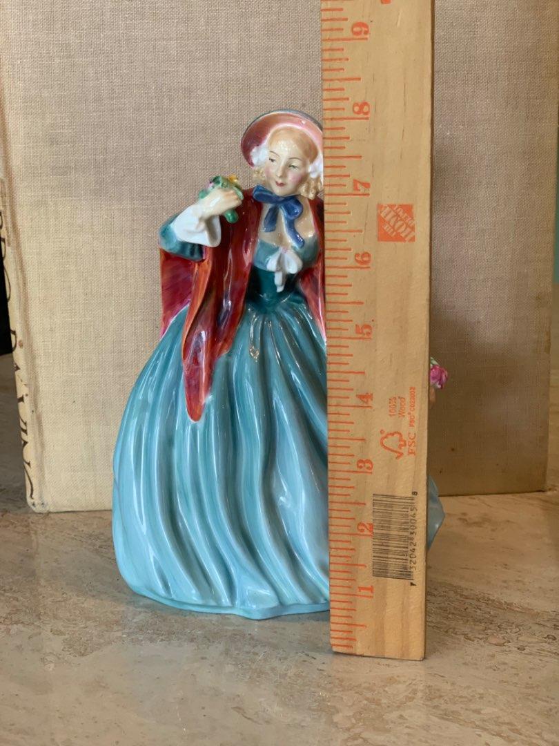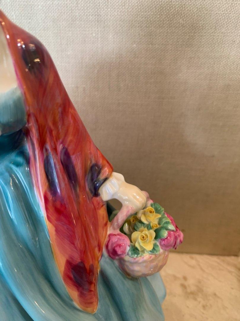 A beautiful Royal Doulton figurine called Lady Charmian. She has a light blue/green skirt with a multi colored shawl. 8 3/8 inches tall. Marked on the bottom HN 1948. No chips, nicks or cracks.